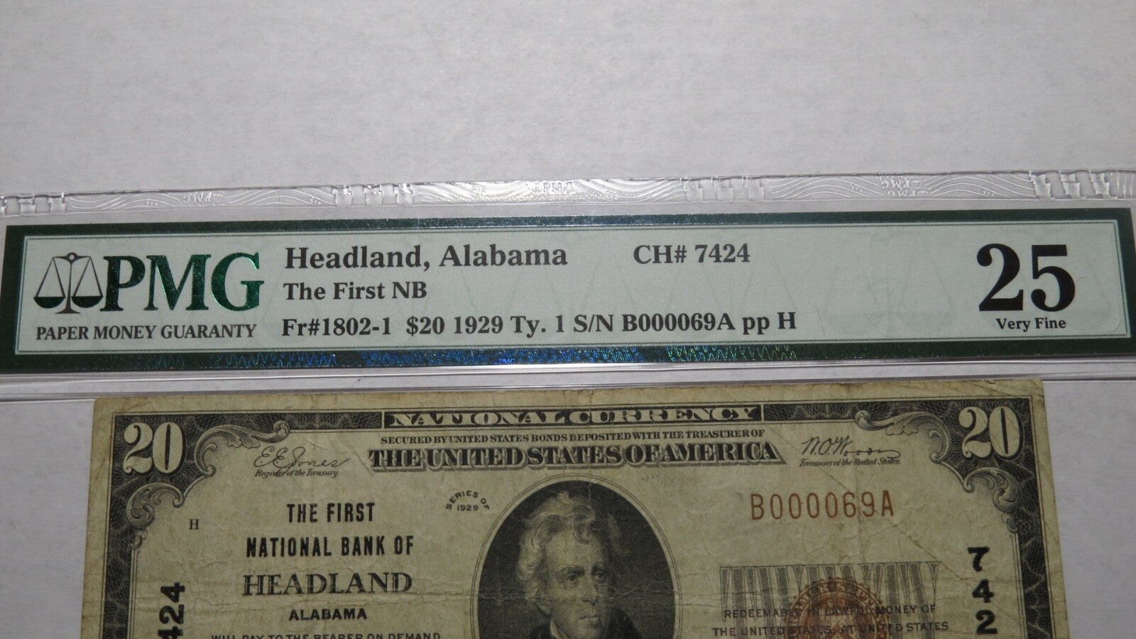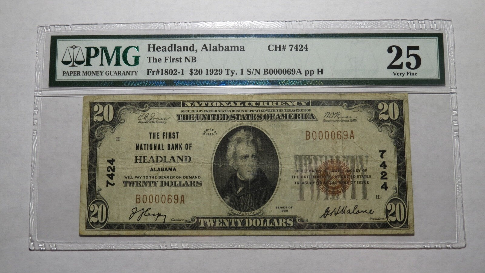 $20 1929 Headland Alabama AL National Currency Bank Note Bill Ch. #7424 VF25 PMG