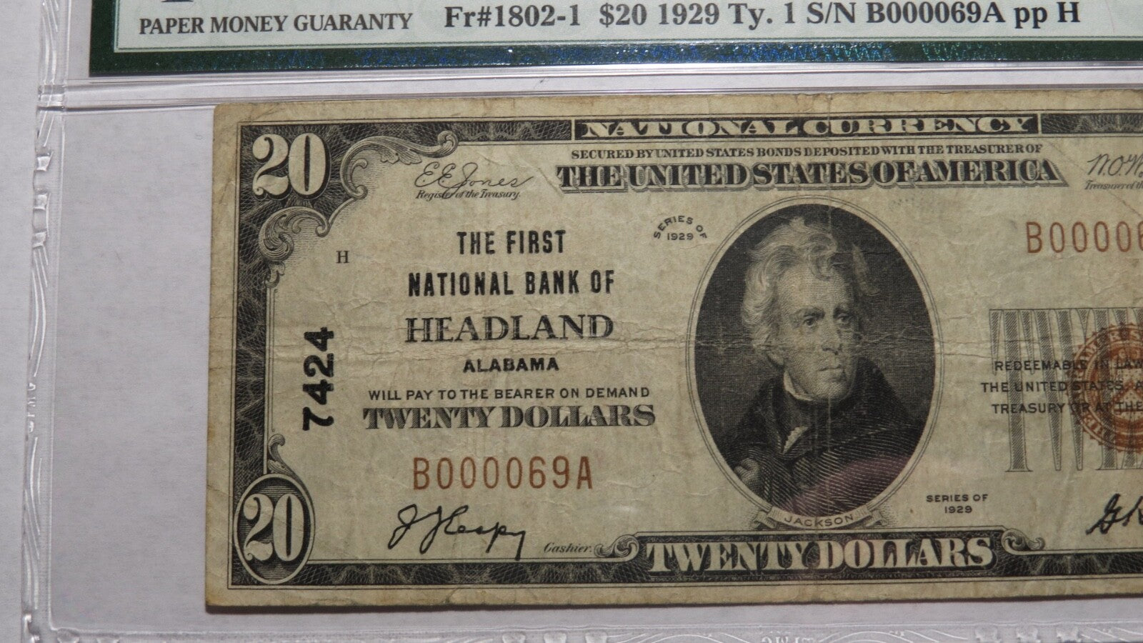 $20 1929 Type 1 Headland Alabama National Currency Note