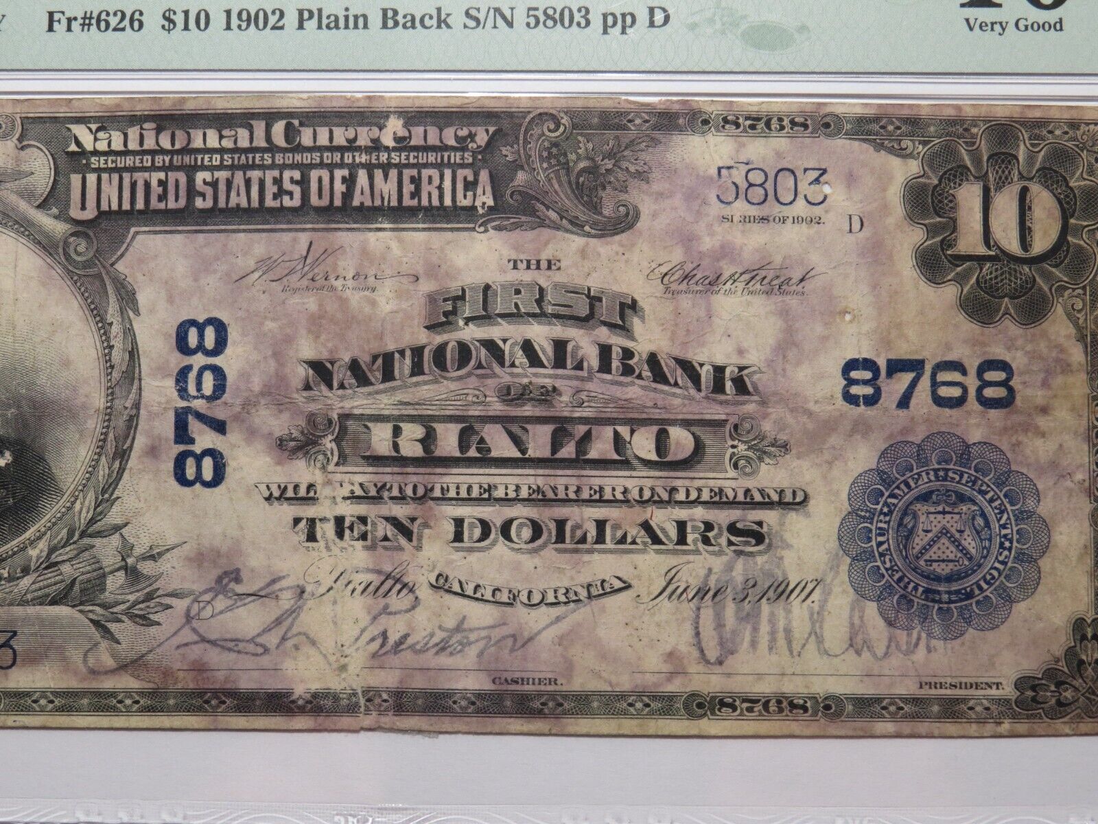 $10 1902 Rialto California CA National Currency Bank Note Bill #8768 VG10 PMG