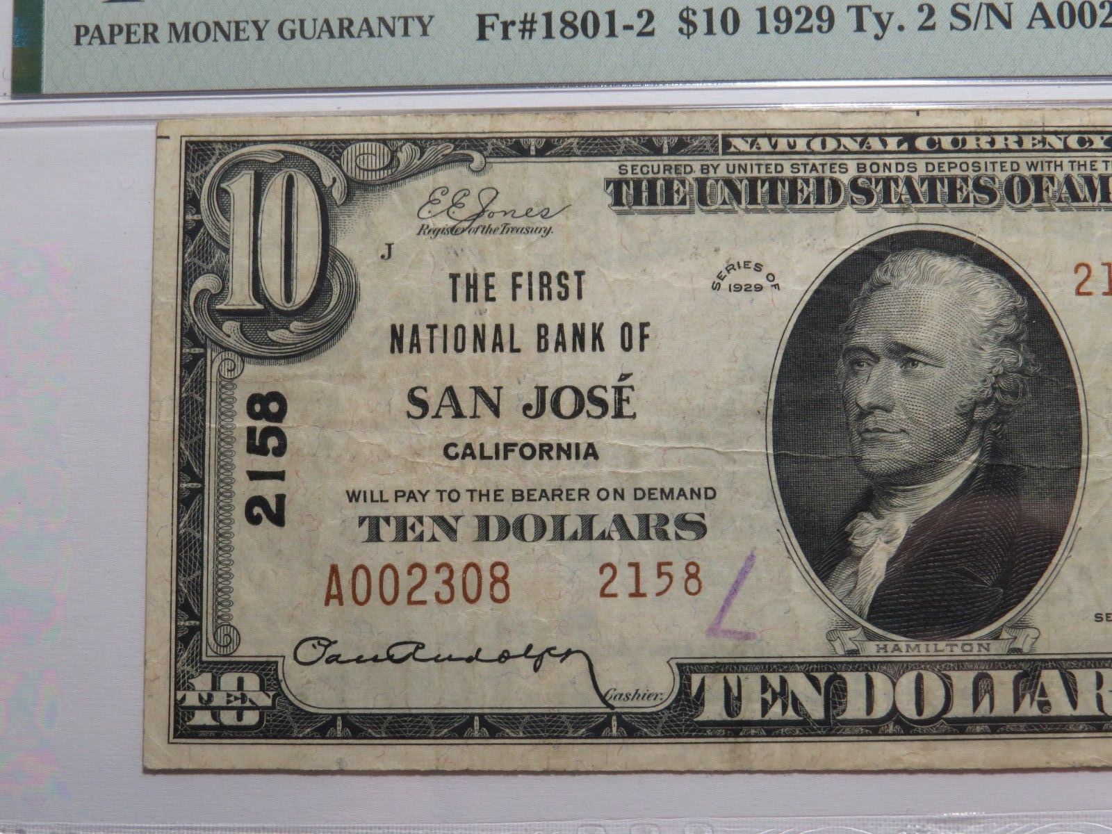 Up for auction is a $10 1929 San Jose California Type 2 National Currency Note. This note was issued by The First National Bank of San Jose. It is Charter #2158. This is an always in demand San Jose Charter! This note has been graded Very Fine 25 by PMG. This bill is a must have for any collector of National Currency!