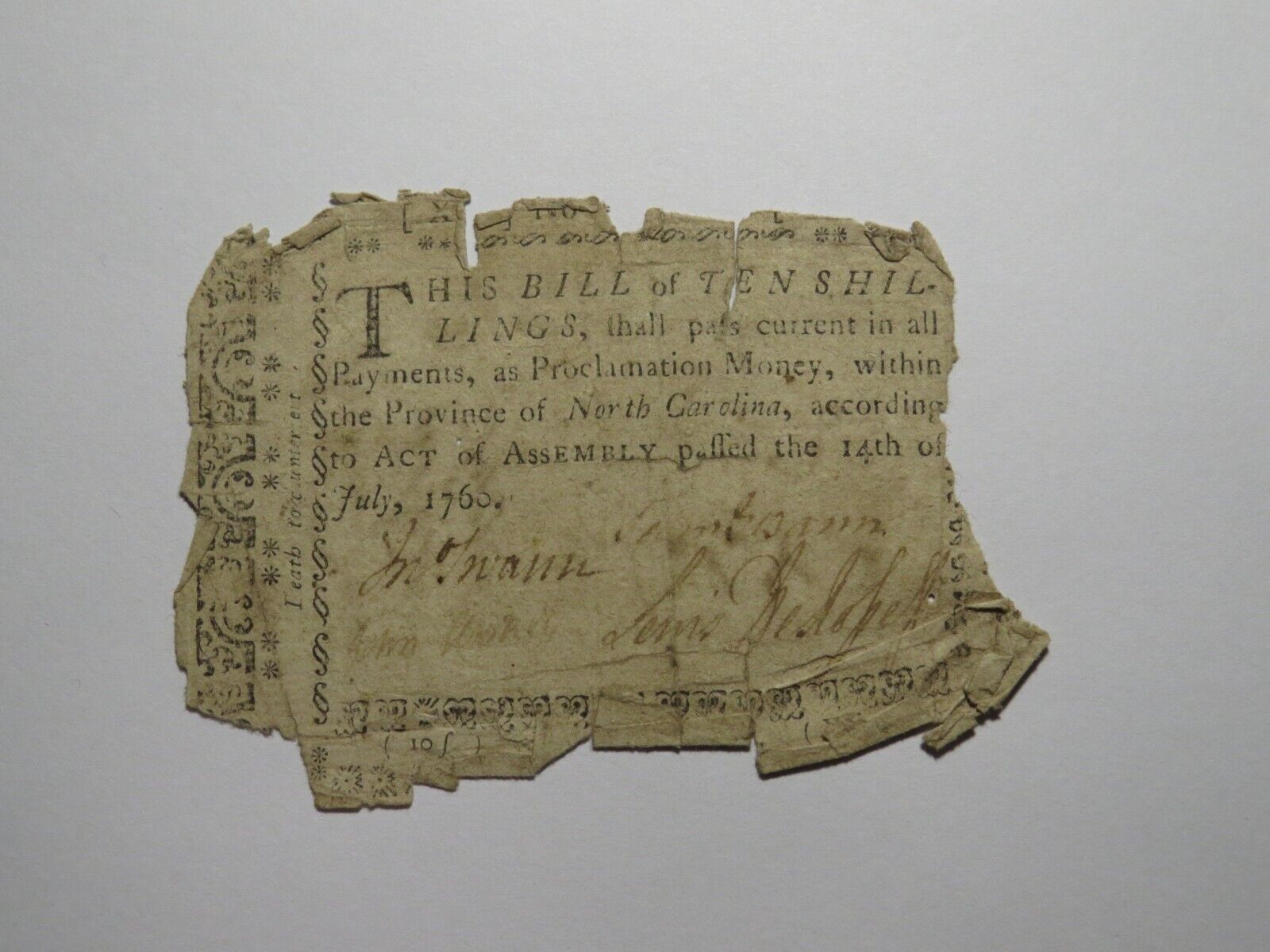 1760 Ten Shillings North Carolina Colonial Currency Note!