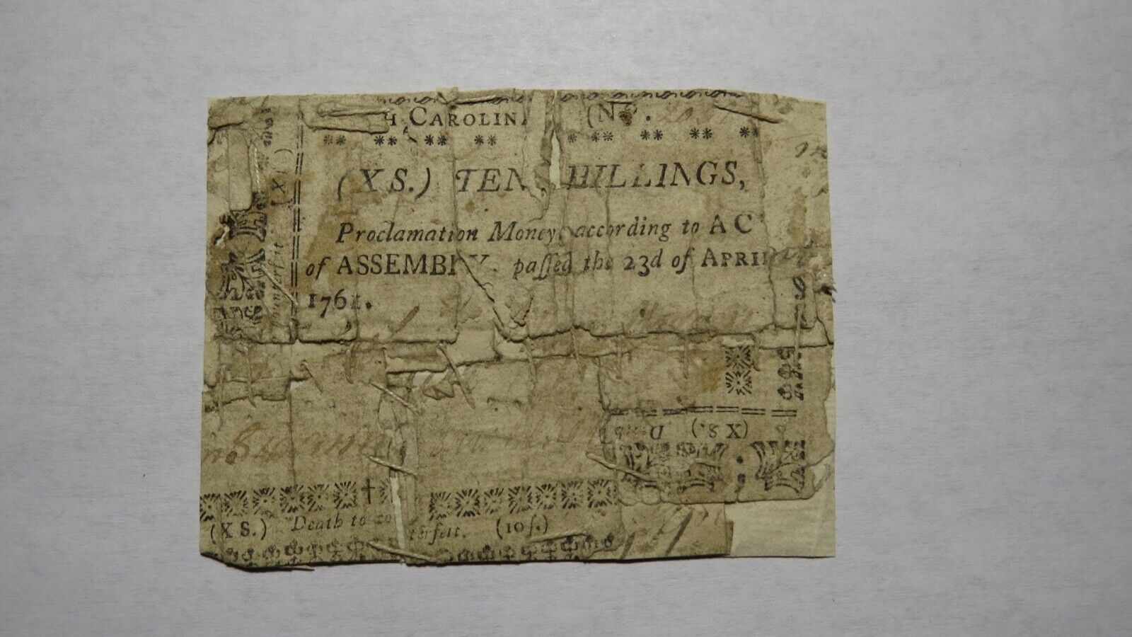 Up for auction is a 1761 Ten Shillings North Carolina Colonial Currency Note