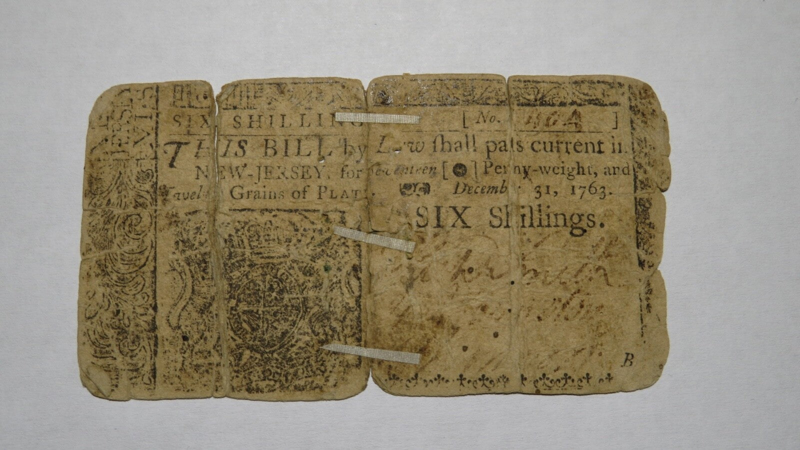 1763 Six Shillings New Jersey Colonial Currency Note!