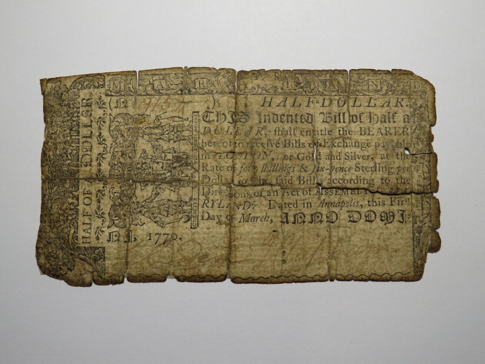 1770 $1/2 Maryland Colonial Currency Note!