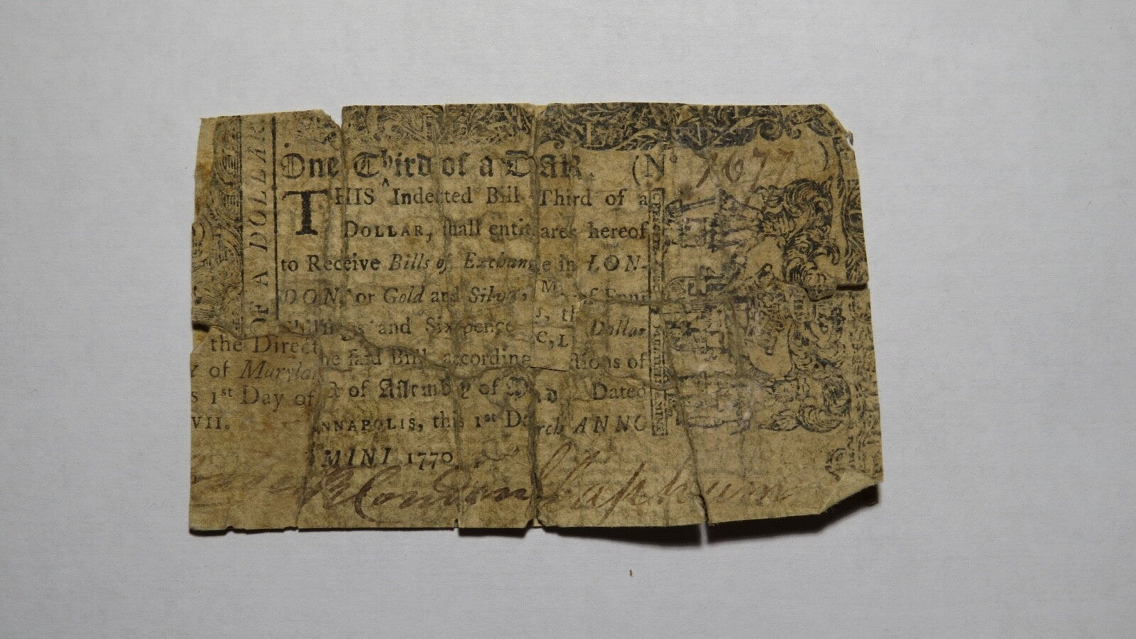 Up for auction is a 1770 $1/3 Maryland Colonial Currency Note