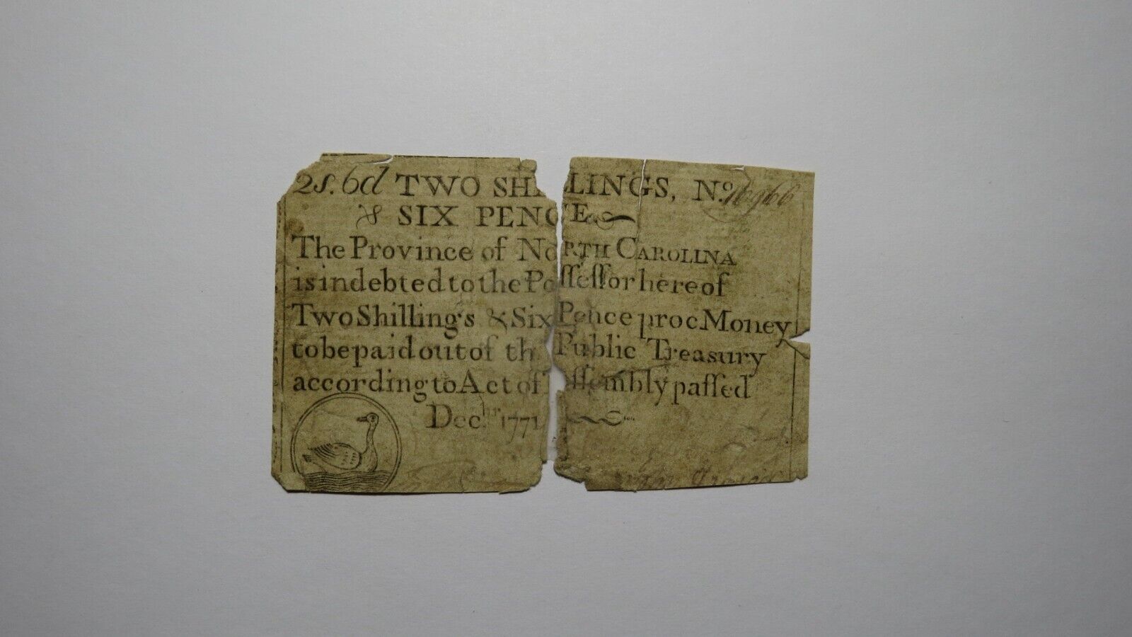 1771 Two Shillings Six Pence North Carolina Colonial Currency Note!