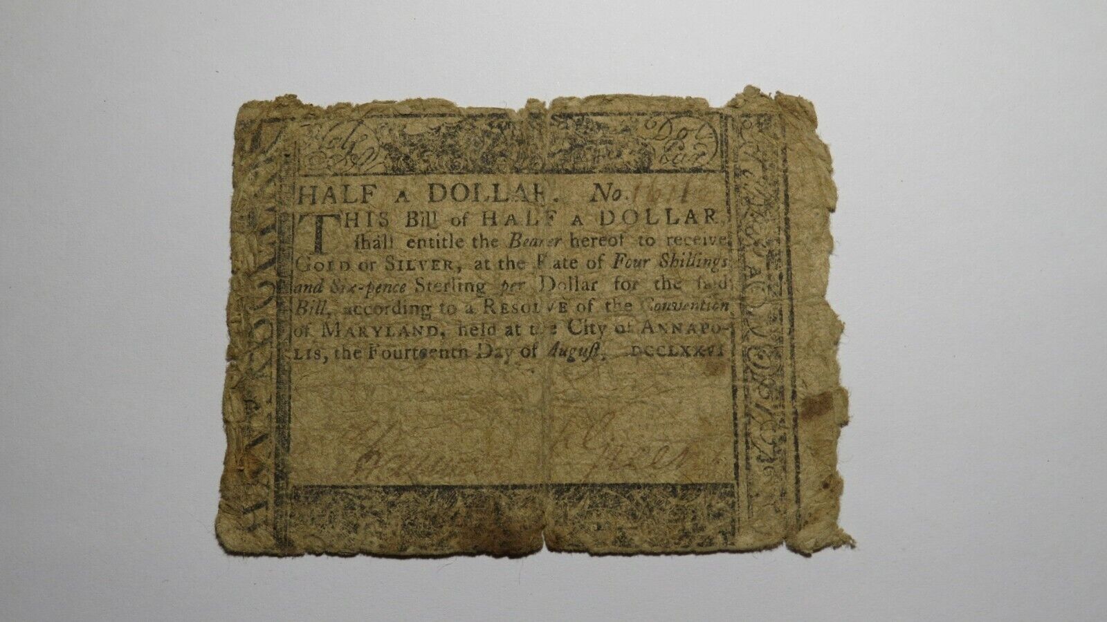 Up for auction is a 1776 $1/2 Maryland Colonial Currency Note. This note is dated August 14, 1776. This note was issued just one month after the signing of the Declaration of Independence! This is a great looking Maryland note that is just an all around scarce issue. This bill is a must have for any collector of Colonial Currency!