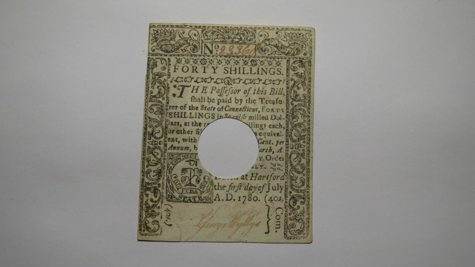 1780 40 Shillings Hartford Connecticut Colonial Currency Note!