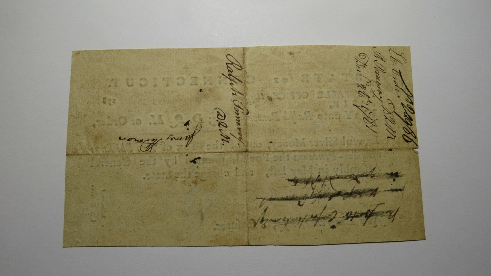 .  This certificate is dated December 26, 1781.  This note has been hand signed by Finn Wadsworth, Ralph Pomeroy and William Moseley This bill is a must have for any collector of Colonial Currency!