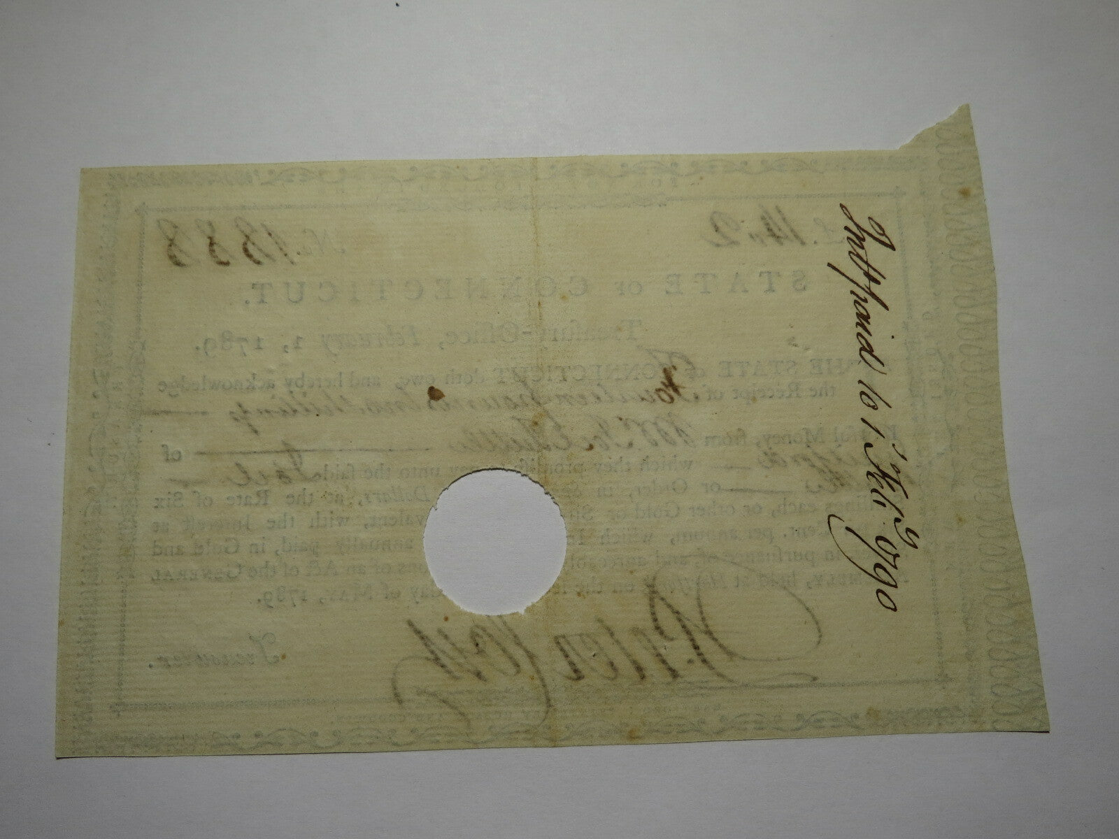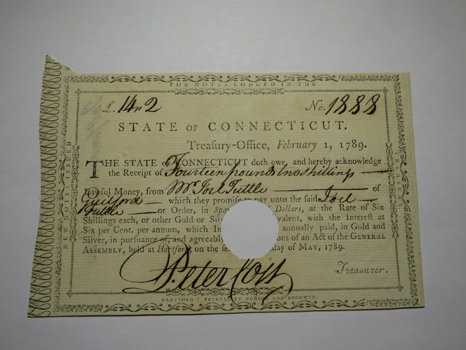 1789 Connecticut Pay Table Office Colonial Currency Note Bill! Peter Colt Signed