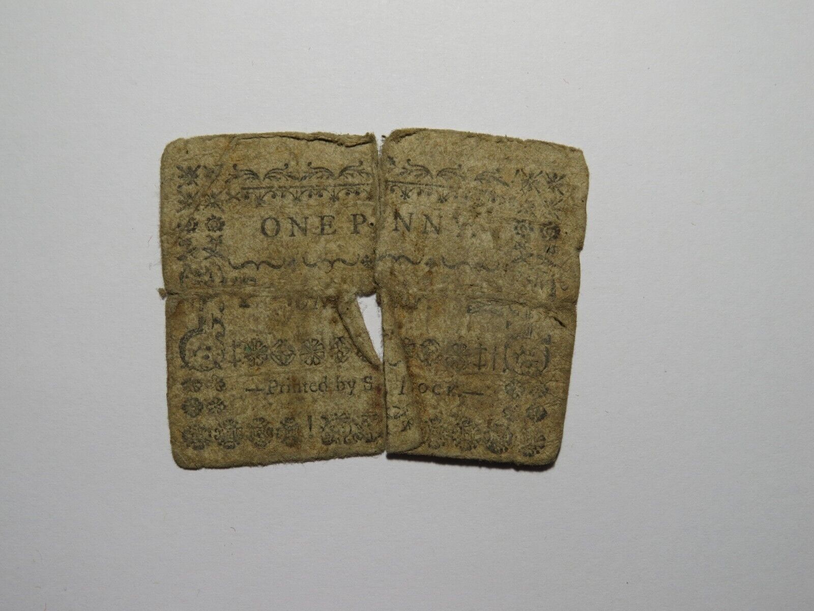1790 One Penny Newark New Jersey Colonial Currency Note Bill Elizabeth Borough