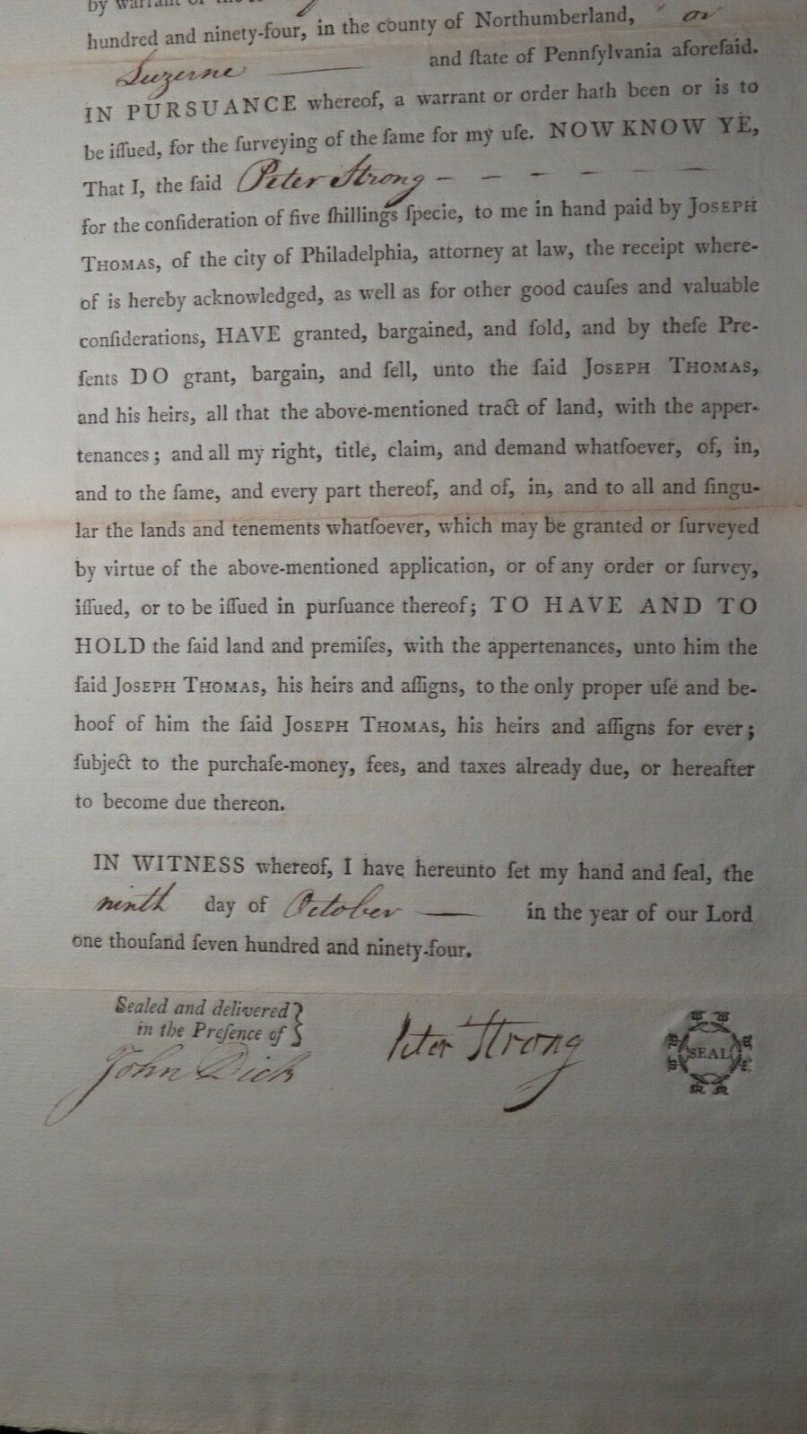 1794 Northumberland Pennsylvania Colonial Land Grant!