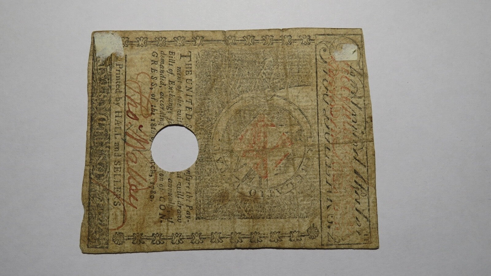 .  This note is dated May 5, 1780.  This note has been hole cancelled.  This is a great looking Massachusetts note that is just an all around scarce issue. This bill is a must have for any collector of Colonial Currency!