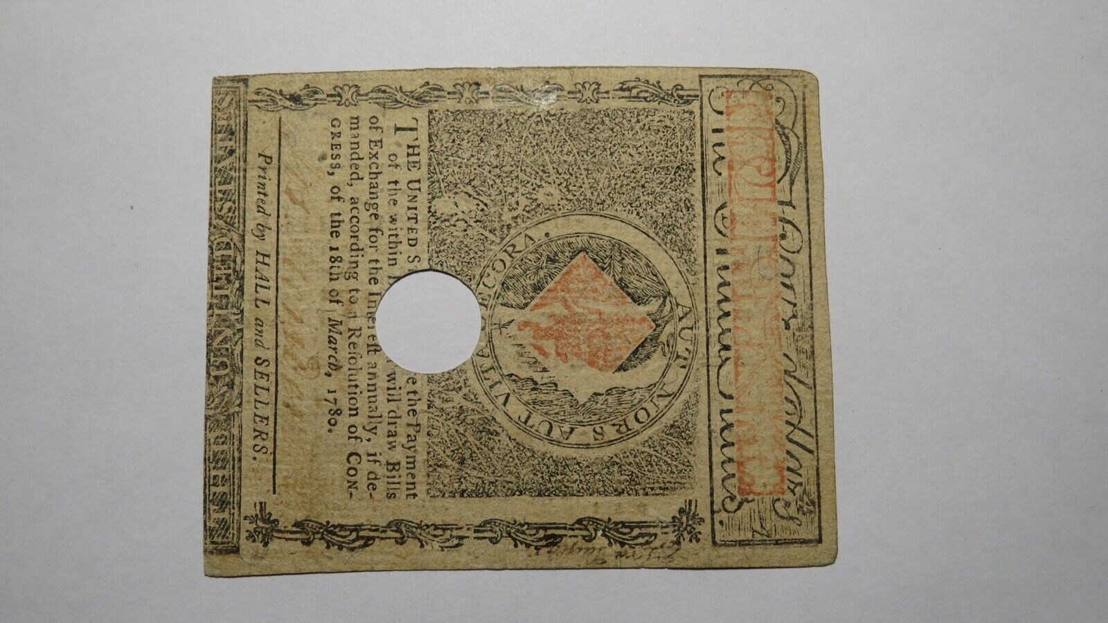 Up for auction is a 1780 $4 Massachusetts Bay Colonial Currency Note. This note is dated May 5, 1780. This note has been hole cancelled. This is a great looking Massachusetts note that is just an all around scarce issue. This bill is a must have for any collector of Colonial Currency!