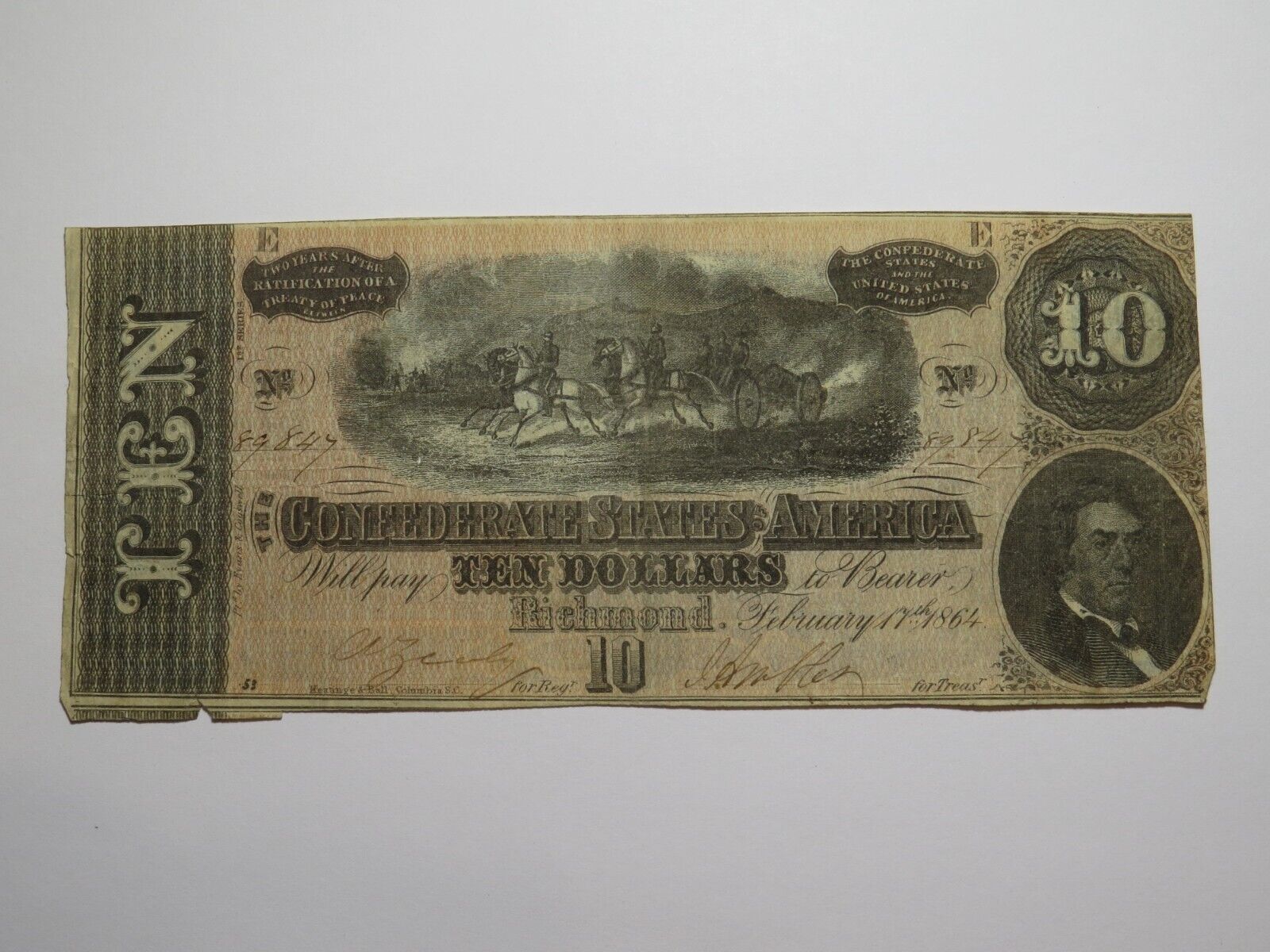 Up for auction is a $10 1864 T68 Richmond Virginia Confederate Currency Note. This note is dated February 17, 1864. This note is in Fine condition. This bill is a must have for any collector of Confederate Currency. If you have any questions please feel free to ask.