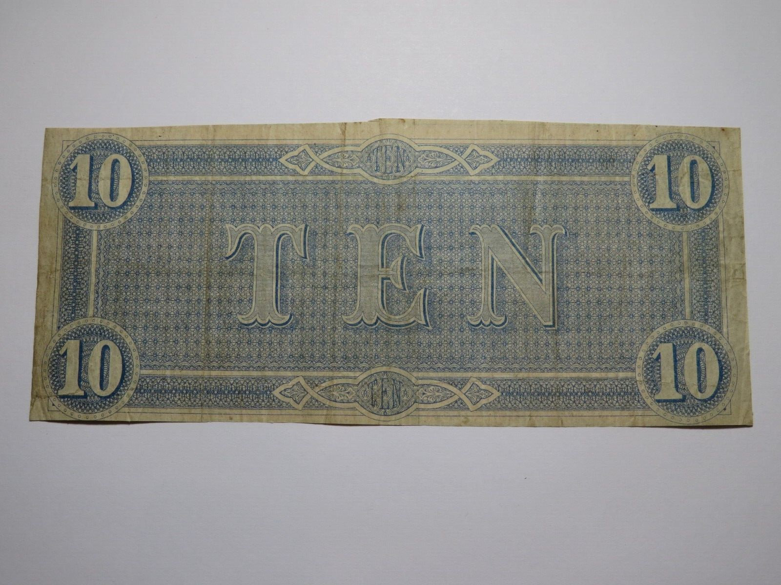 $10 1864 Richmond Virginia VA Confederate Currency Bank Note Bill RARE T68 FINE