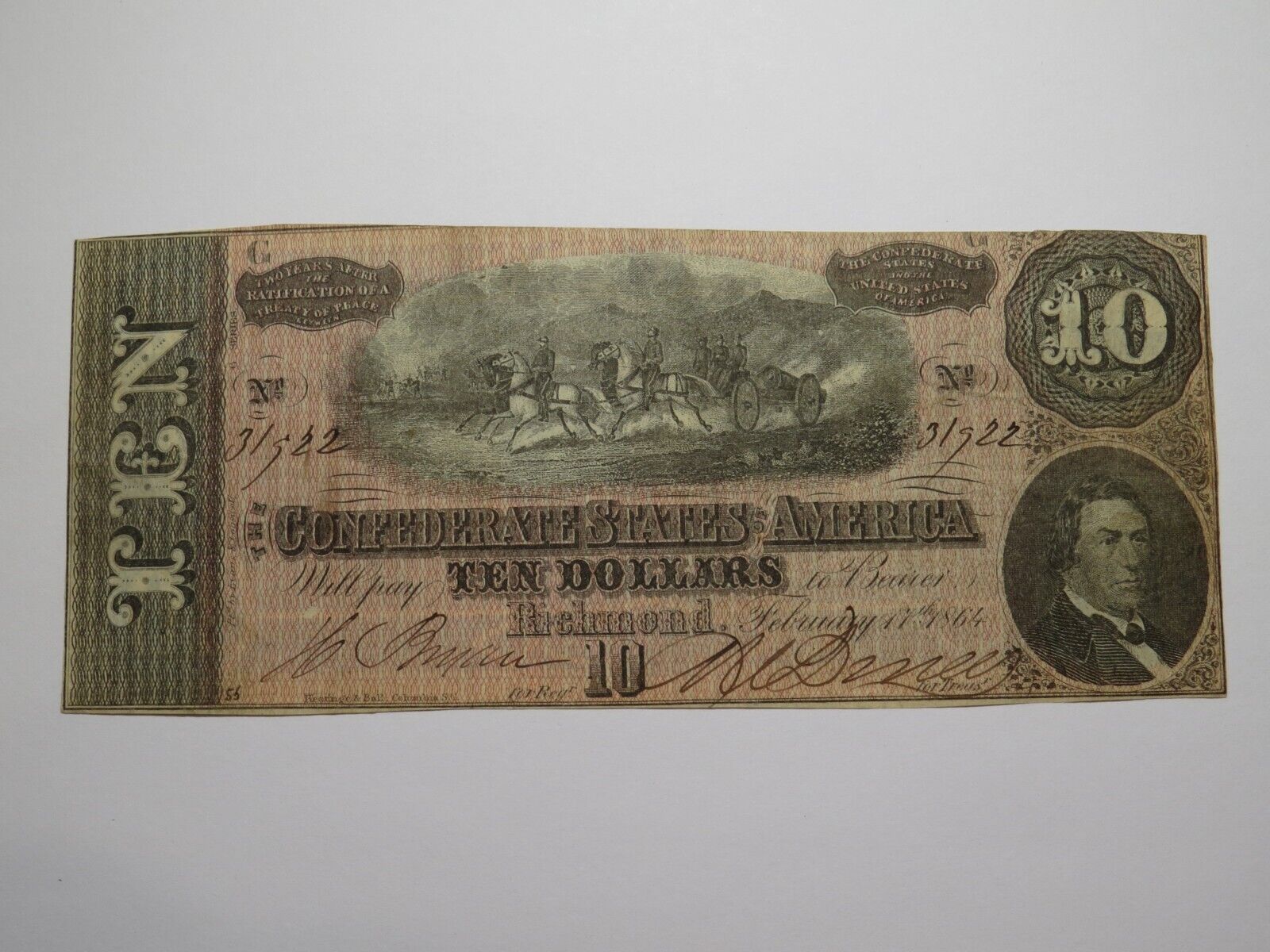 Up for auction is a $10 1864 T68 Richmond Virginia Confederate Currency Note