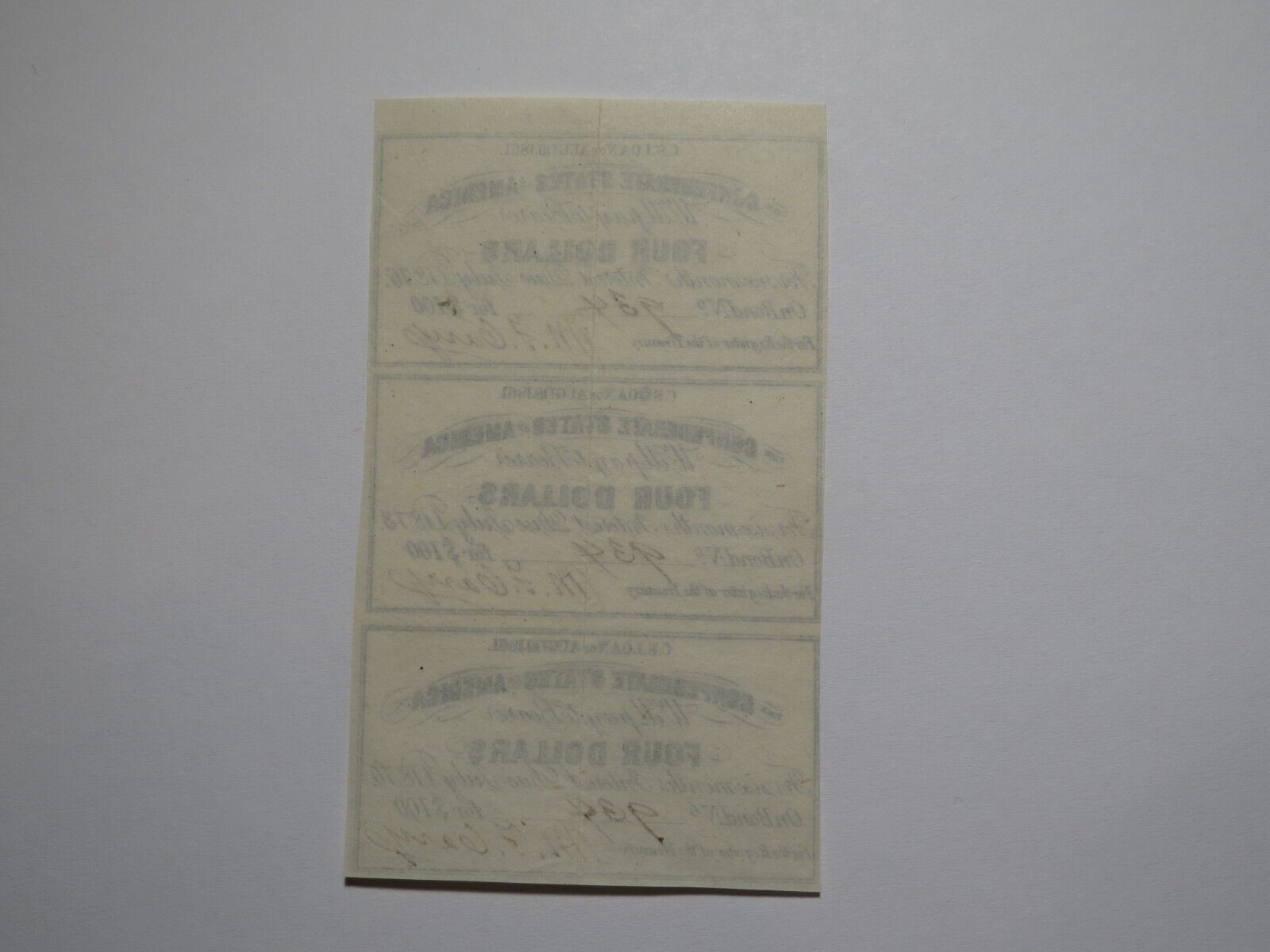 Up for auction is a $4 1861 Confederate Bond Coupon Uncut Sheet of Three Notes
