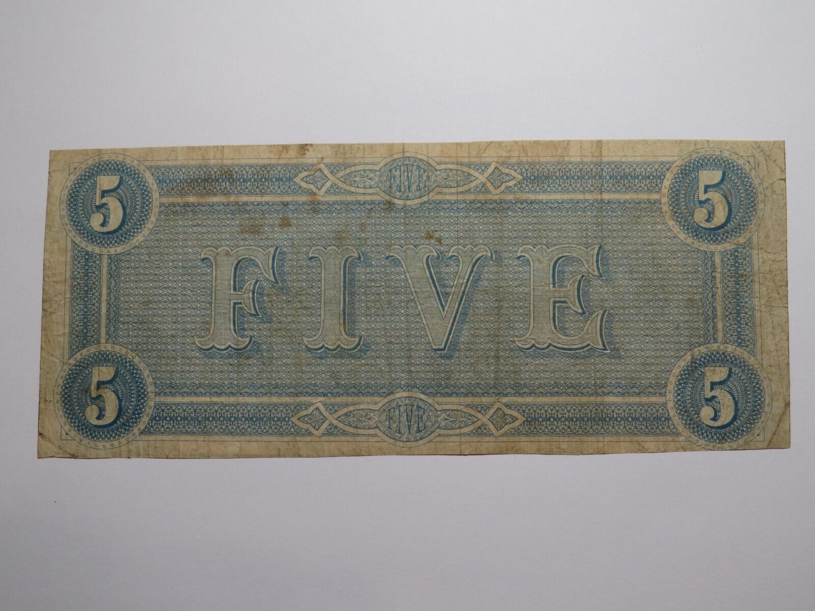$5 1864 Richmond Virginia VA Confederate Currency Bank Note Bill RARE T69 FINE