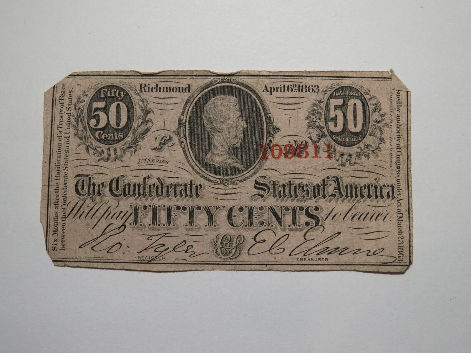 $.50 1863 T63 Richmond Virginia Confederate Currency Note!
