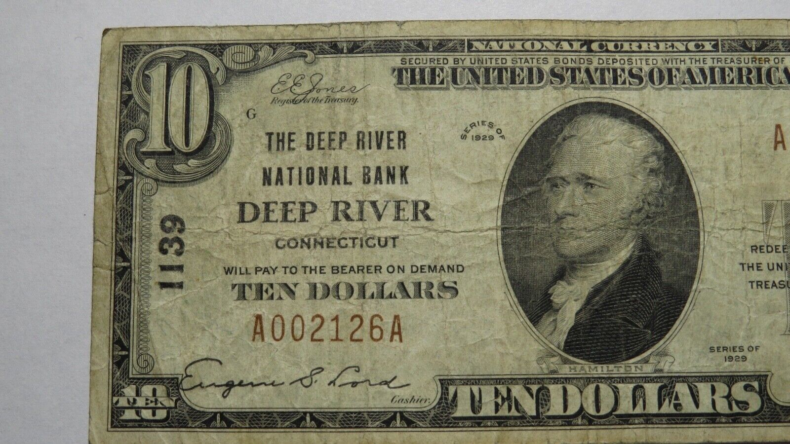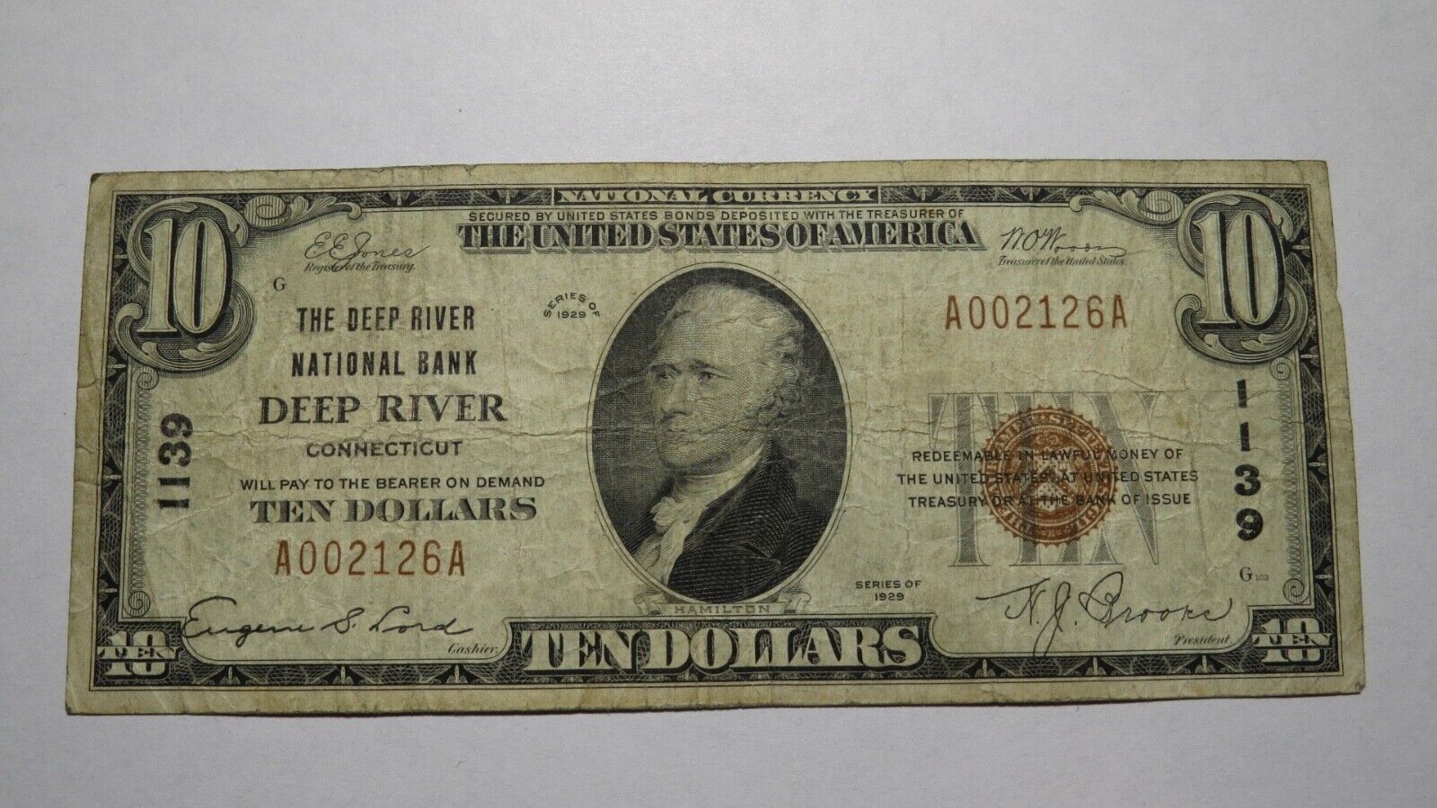 $10 1929 Type 1 Deep River Connecticut National Currency Note!
