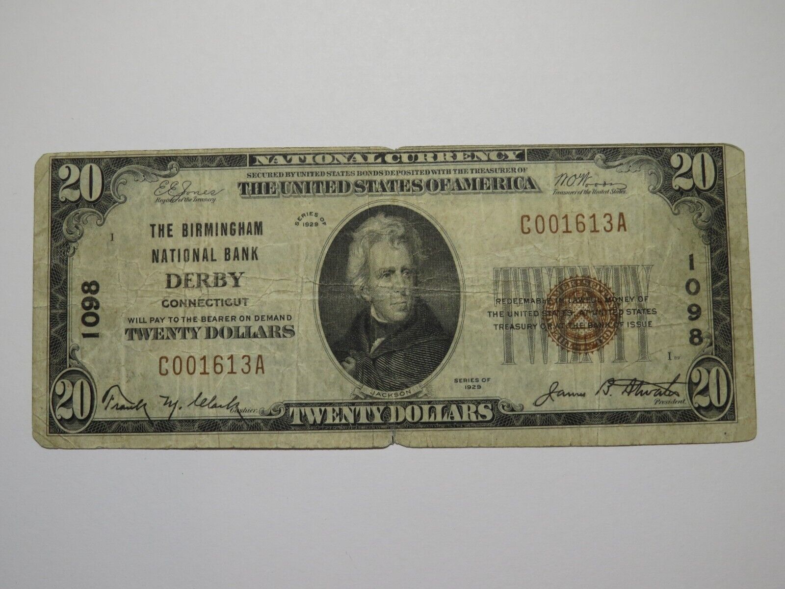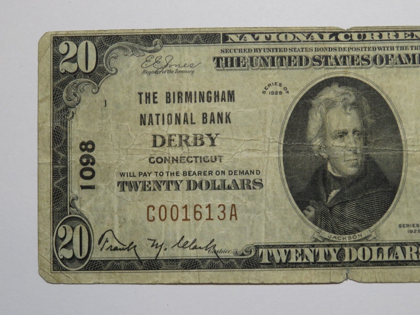 $20 1929 Derby Connecticut National Currency Bank Note Bill Ch. #1098 Birmingham