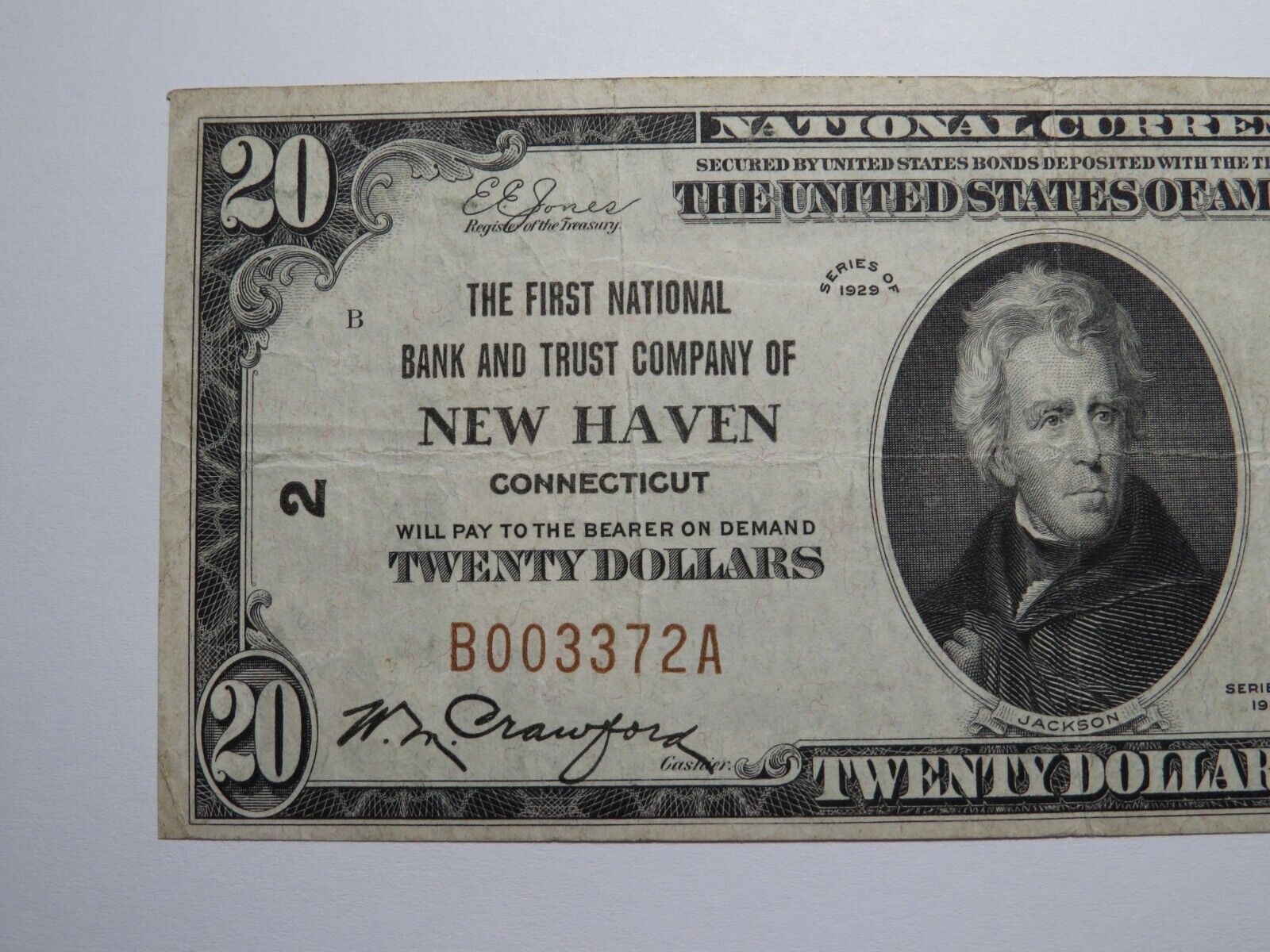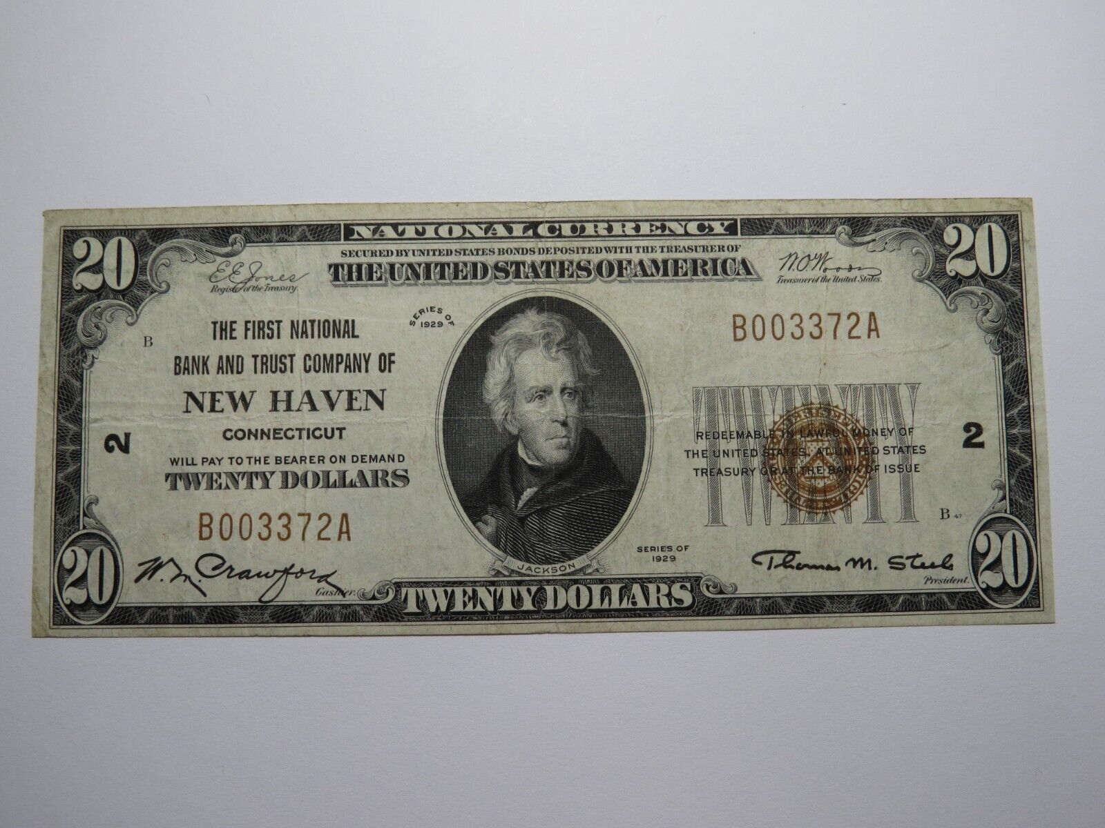 $20 1929 New Haven Connecticut CT National Currency Bank Note Bill Ch. #2 VF++