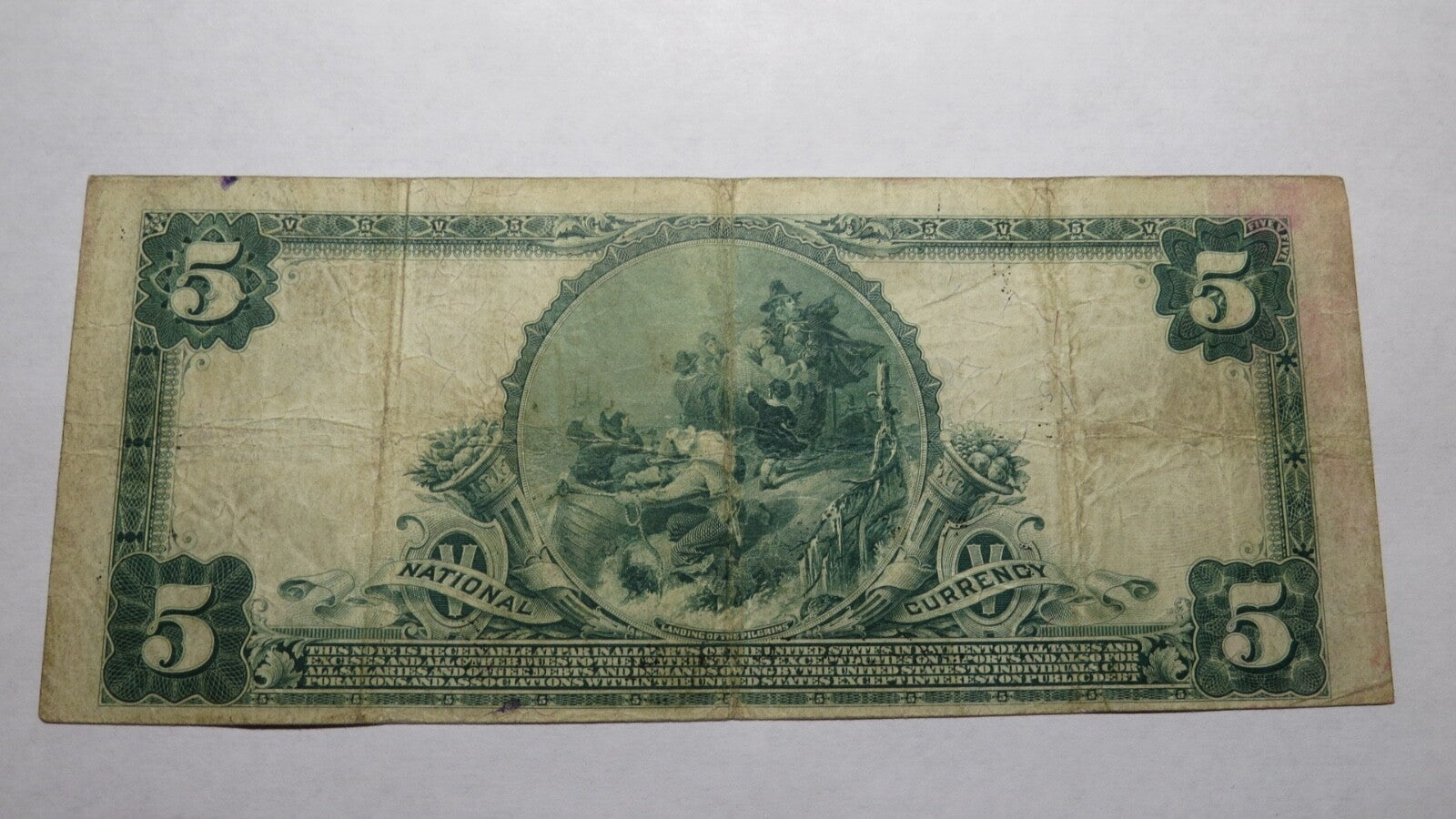 Up for auction is a $5 1902 Bristol Connecticut Plain Back National Currency Note