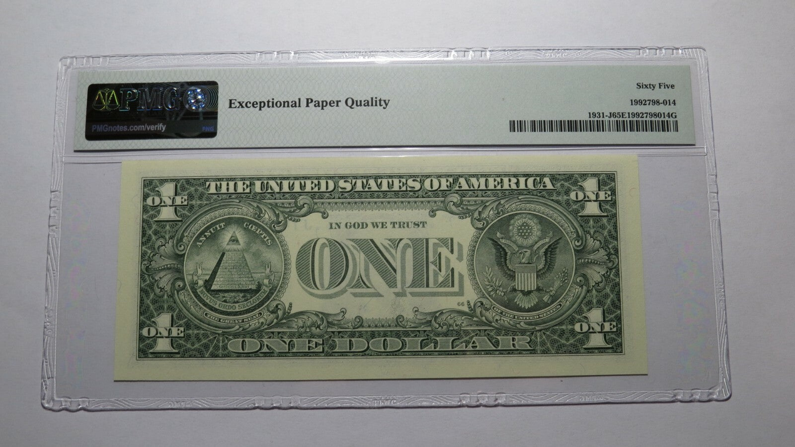 $1 2003 Repeater Serial Number Federal Reserve Currency Bank Note Bill PMG UNC65