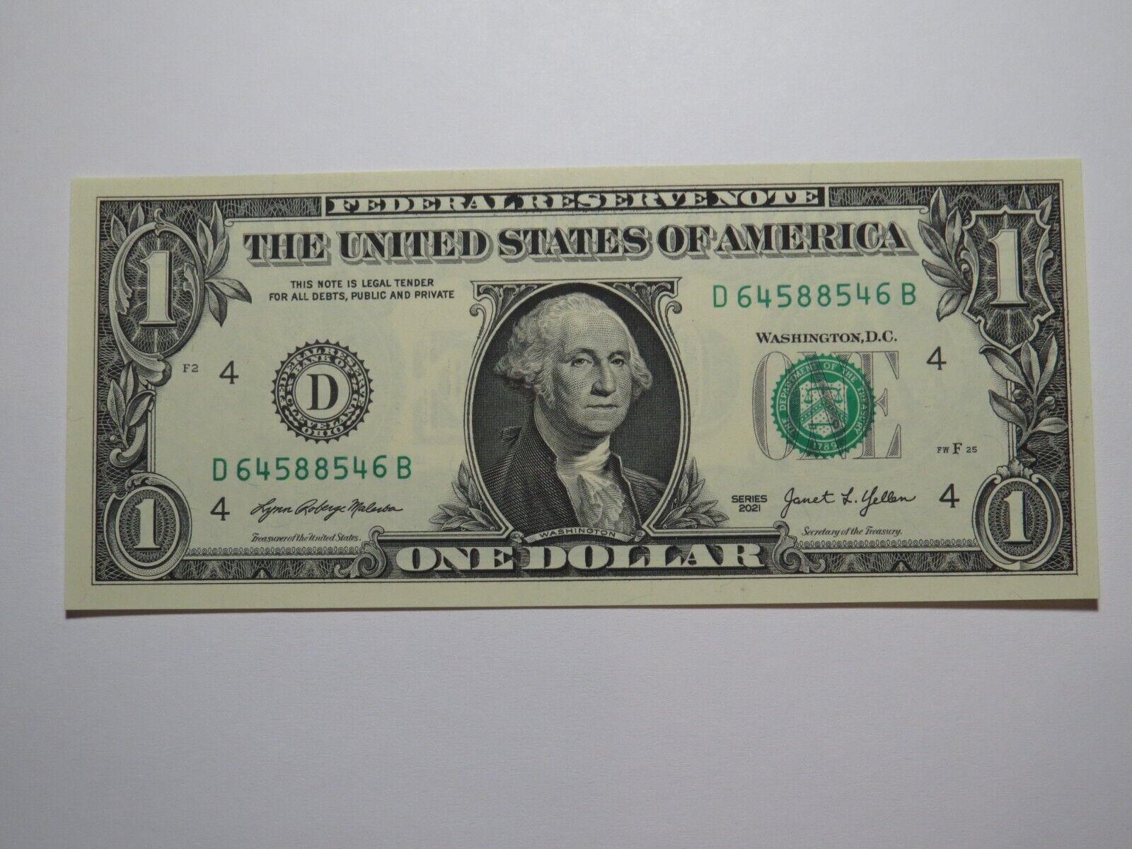 $1 2021 Radar Serial Number Federal Reserve Currency Bank Note Bill UNC 64588546