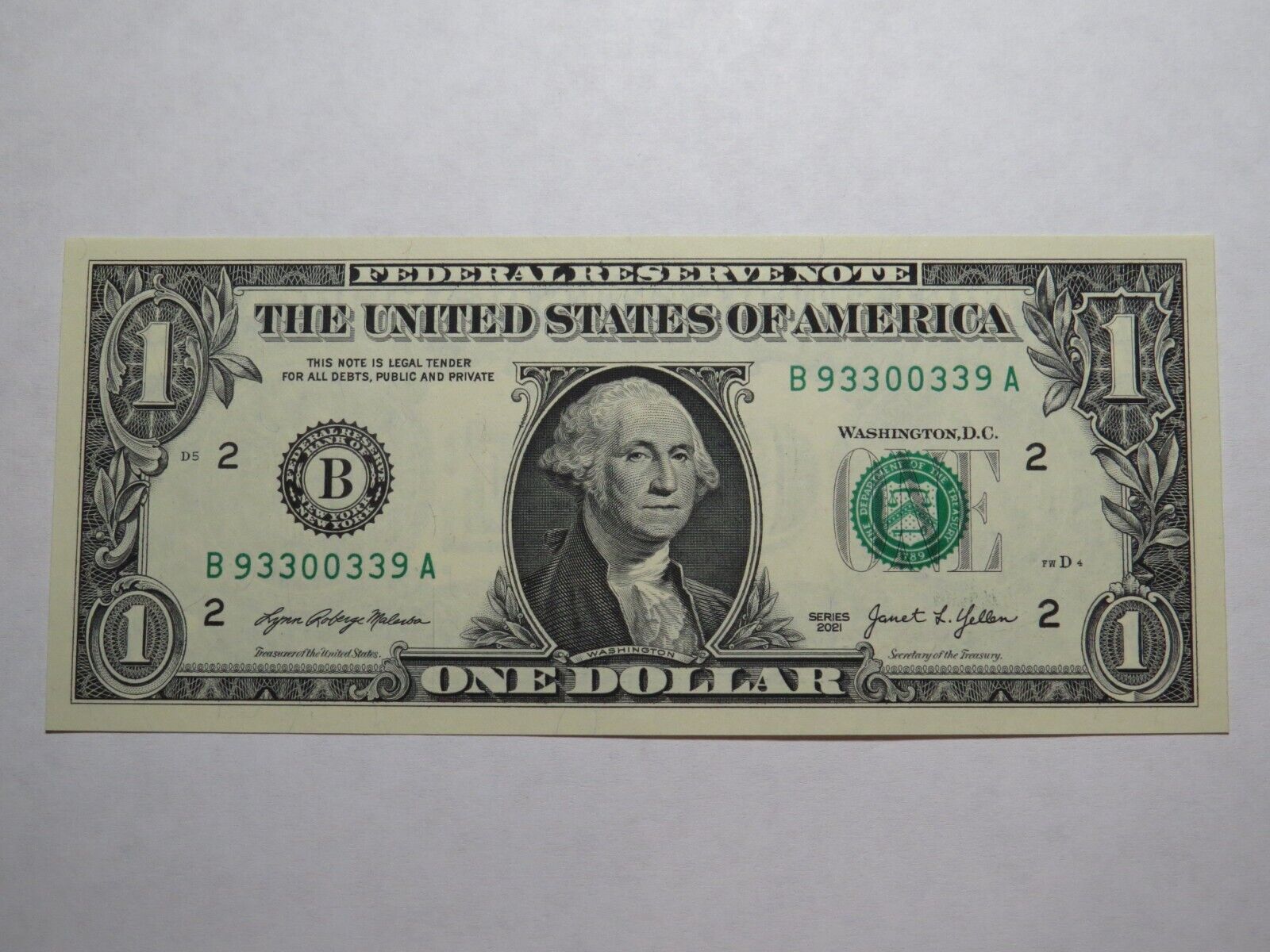 $1 2021 Radar Serial Number Federal Reserve Currency Bank Note Bill UNC 93300339