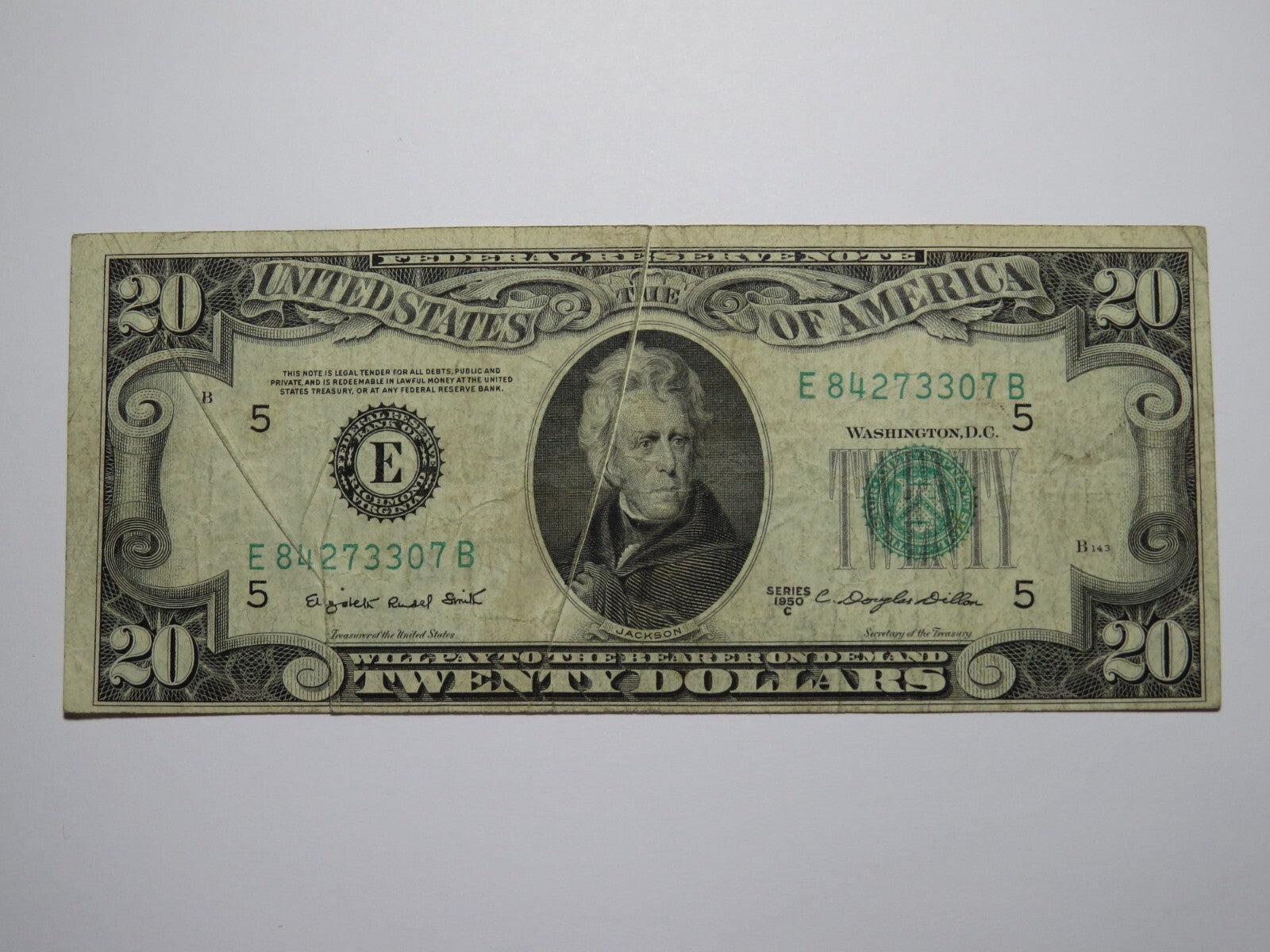 $20 1950-C Gutter Fold Error Federal Reserve Bank Note Currency Bill FINE