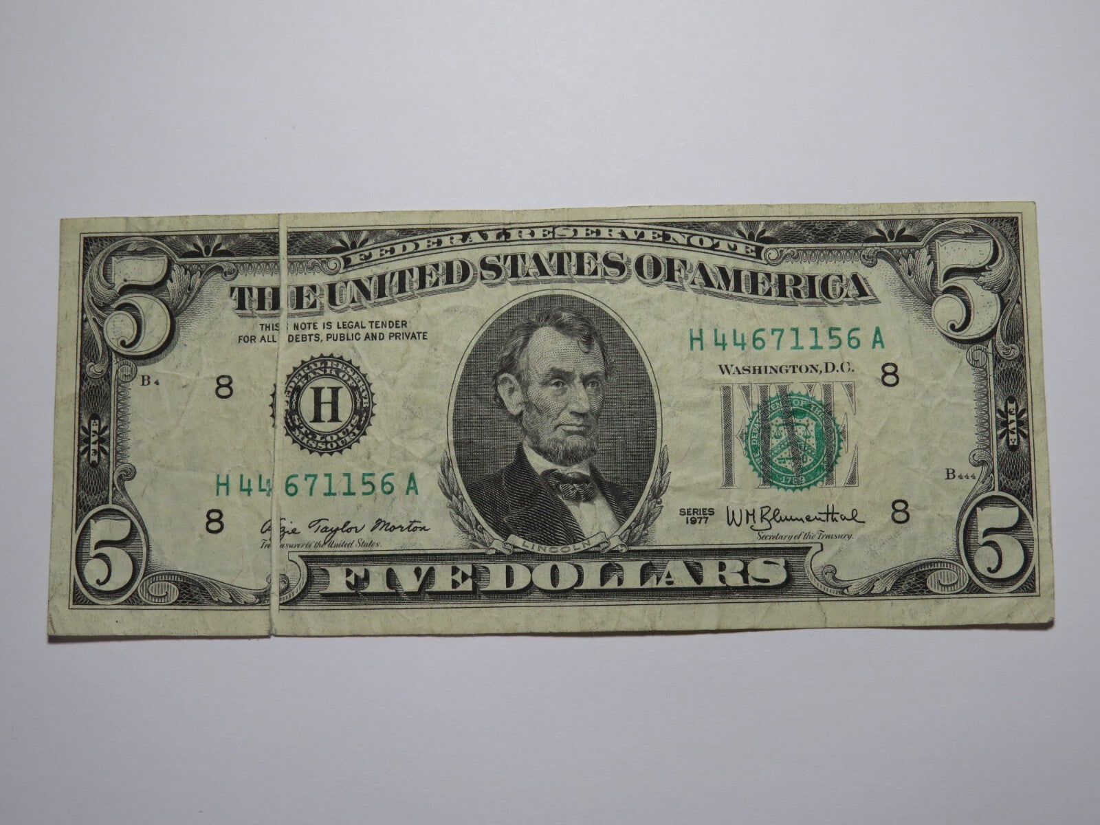 $5 1977 Gutter Fold Error Federal Reserve Note!