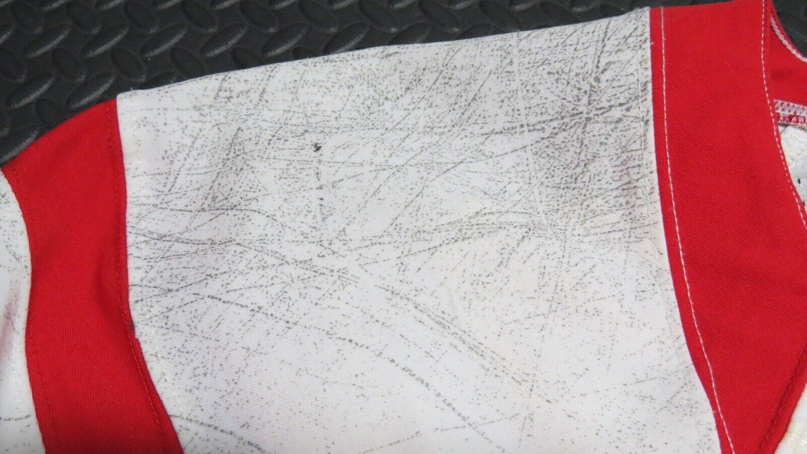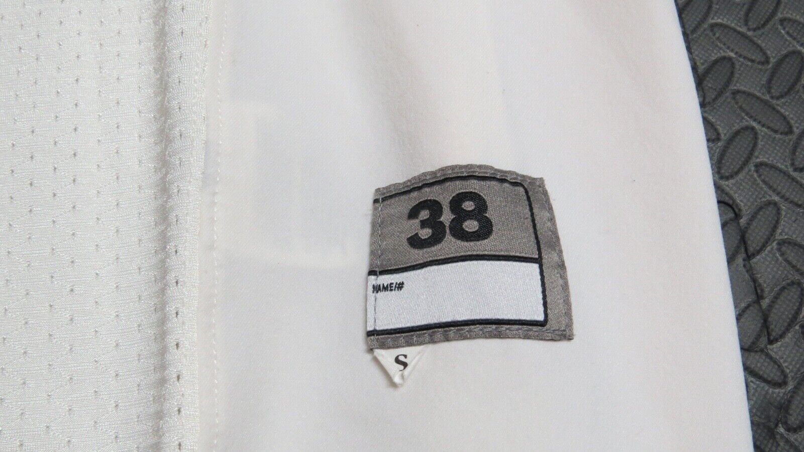 Up for auction is a 2013 Rutgers Scarlet Knights Game Worn White Nike Jersey. This jersey is from the 2013 Rutgers Football Season and is affixed with the Big Ten Patch (glue residue from where the American patch on the sleeve was removed still remains)! This jersey was worn by Wide Receiver Vance Matthews. As per NCAA regulations, the nameplate has been removed from this jersey, and the jersey does show solid game use! This jersey is a size 38. Rutgers Big 10 jerseys are very difficult to come by, and are truly some of the best looking jerseys in school history! Don't miss this chance to own a great looking gamer from one of the best conferences in the NCAA!