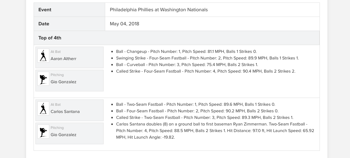 Up for auction is a 2018 Carlos Santana Philadelphia Phillies Double Game Used Baseball. This ball was used on May 4, 2018 in Washington as the Nationals beat the Phillies 7-3. Santana launched this double in the top of the 4th inning off of Gio Gonzalez. This ball was used for 8 total pitches. The first 4 pitches were to Aaron Altherr who eventually was struck out by Gio Gonzalez. The next four pitches were to Santana. The hologram number is JD197116. Thanks for looking!