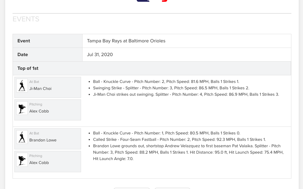 Up for auction is a 2020 Alex Cobb Strikeout Game Used Baseball. This ball was used on July 31, 2020 in Baltimore as the Orioles beat the Tampa Bay Rays 6-3. This ball was used in the Top of the 1st Inning. Alex Cobb struck out Ji-Man Choi using this ball. This ball was also used for the next batter which was Brandon Lowe who grounded out. The hologram number is VS199495. Thanks for looking!