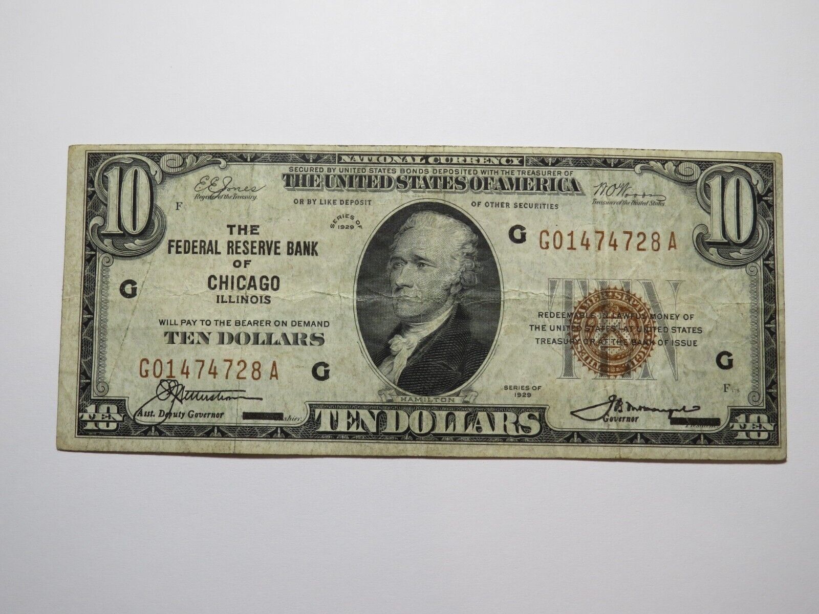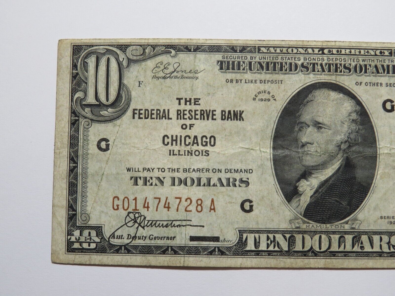 $10 1929 Chicago Illinois National Currency Federal Reserve Bank Note Bill VF