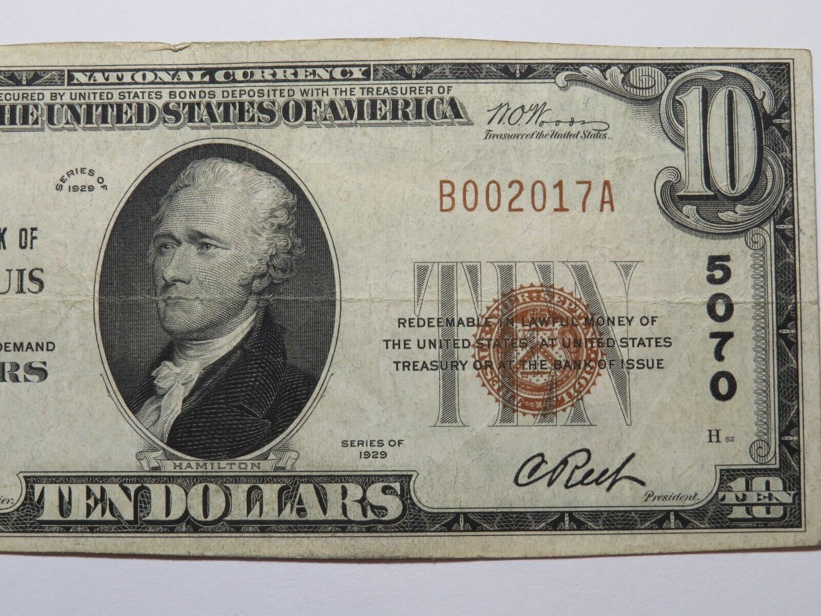 $10 1929 Type 1 East St. Louis Illinois National Currency Note