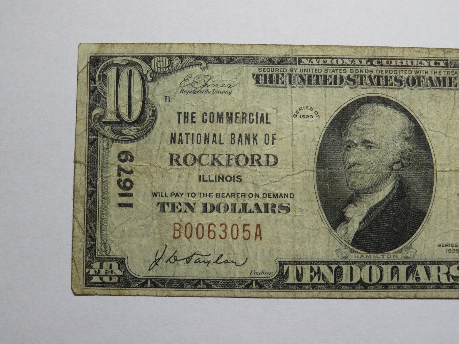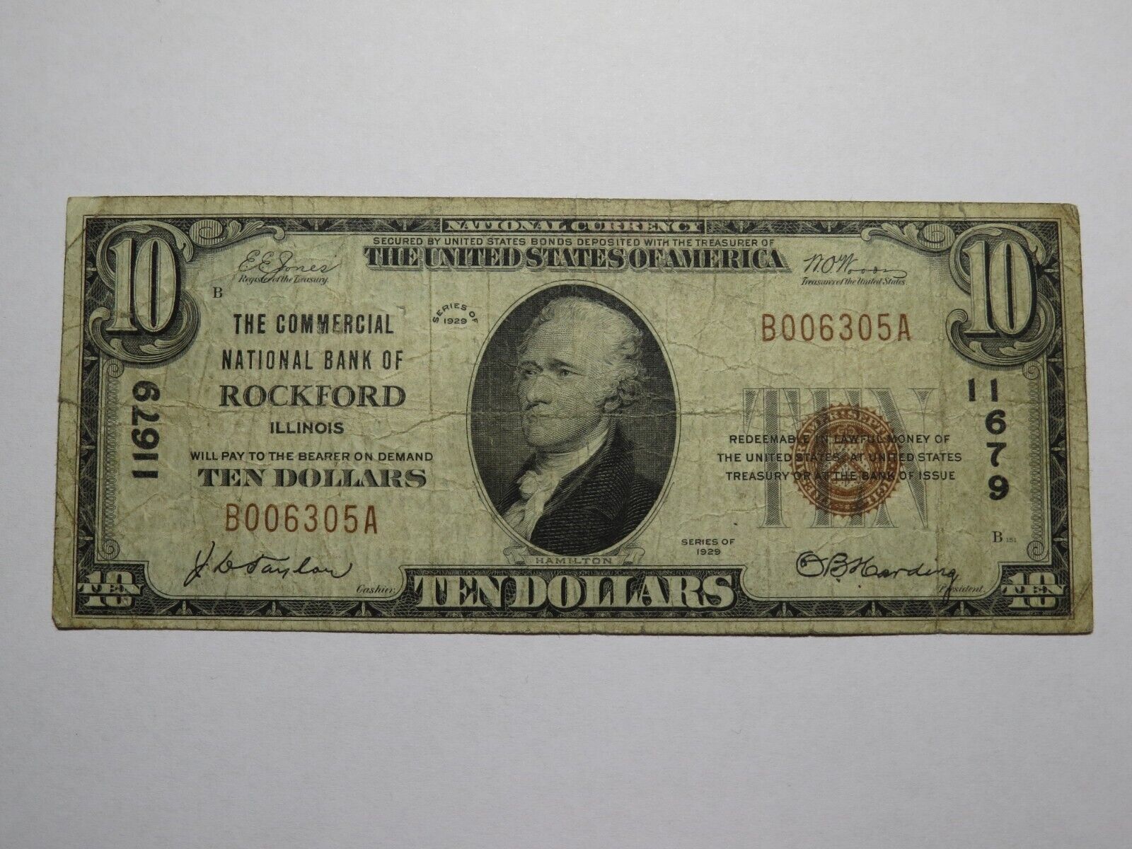 $10 1929 Rockford Illinois IL National Currency Bank Note Bill Ch. #11679 FINE