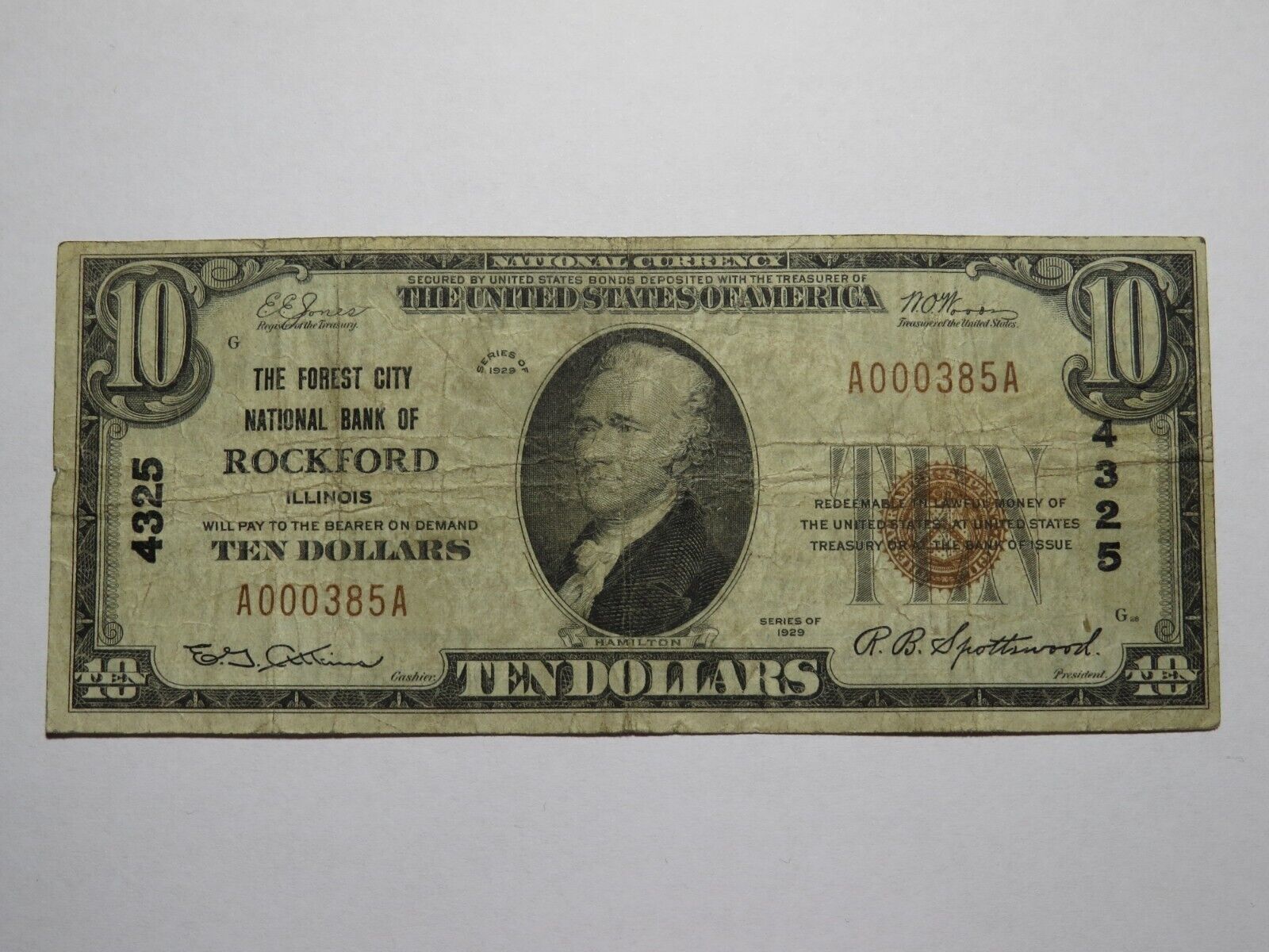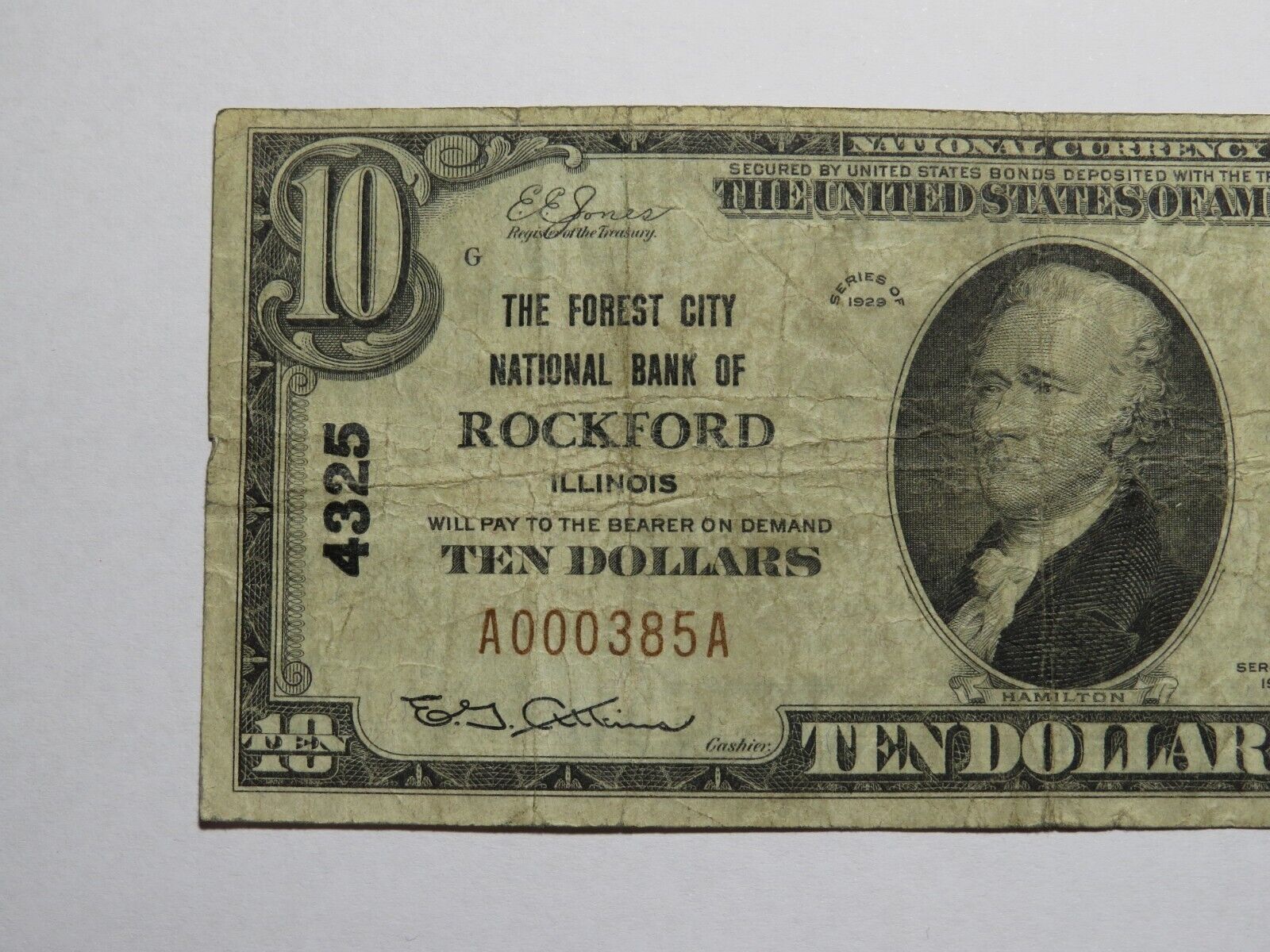 $10 1929 Rockford Illinois IL National Currency Bank Note Bill Ch. #4325 FINE
