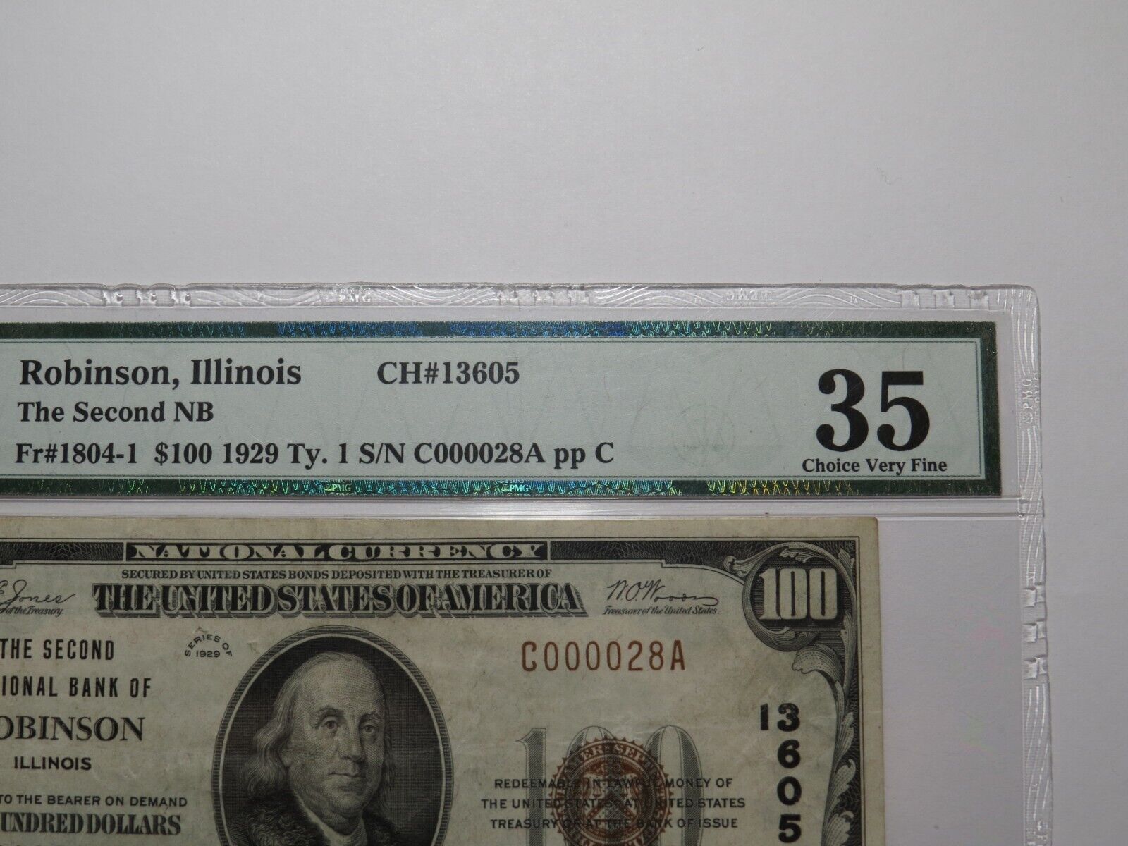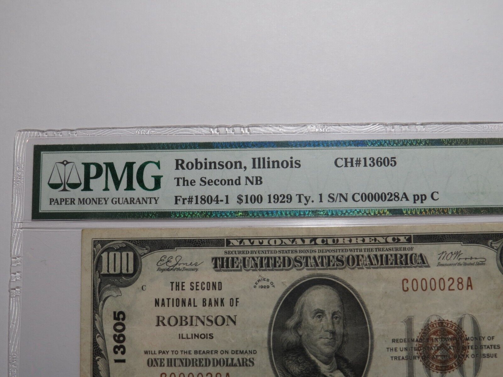 $100 1929 Robinson Illinois National Currency Bank Note Bill Ch. #13605 VF35 PMG