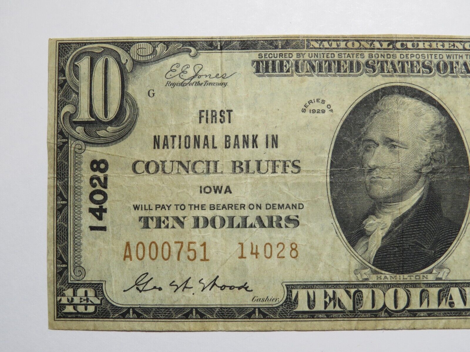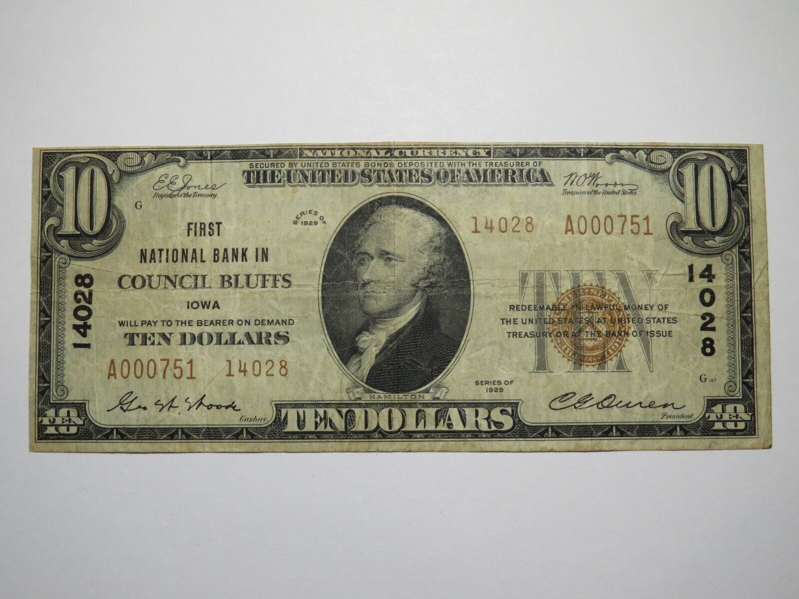 $10 1929 Type 2 Council Bluffs Iowa National Currency Note