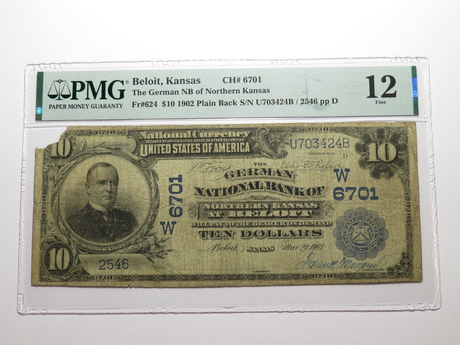 $10 1902 Beloit Kansas KS National Currency Bank Note Bill Charter #6701 F12 PMG