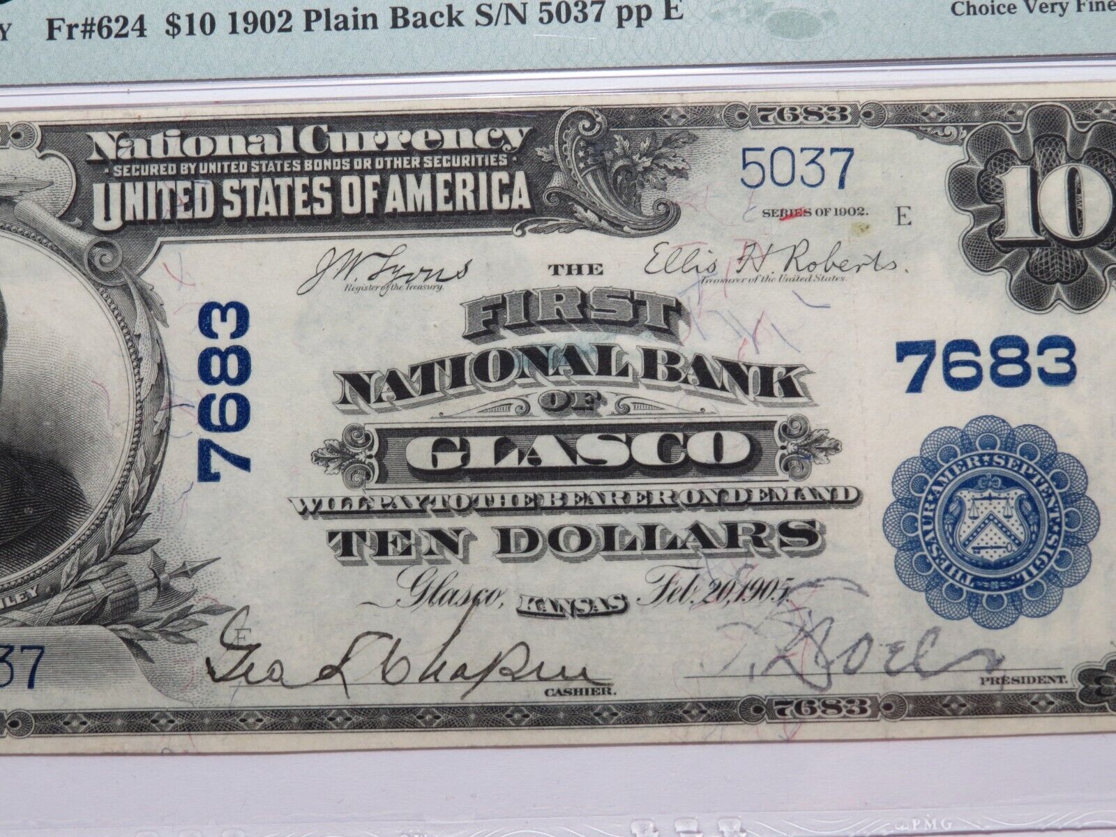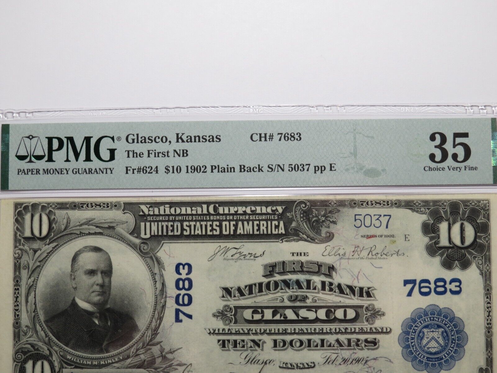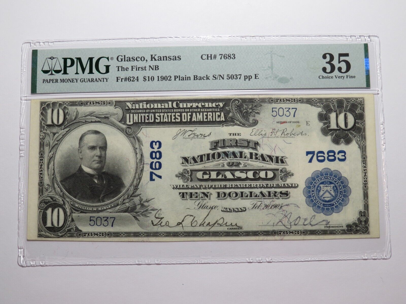 $10 1902 Glasco Kansas KS National Currency Bank Note Bill Ch. #7683 PMG VF35
