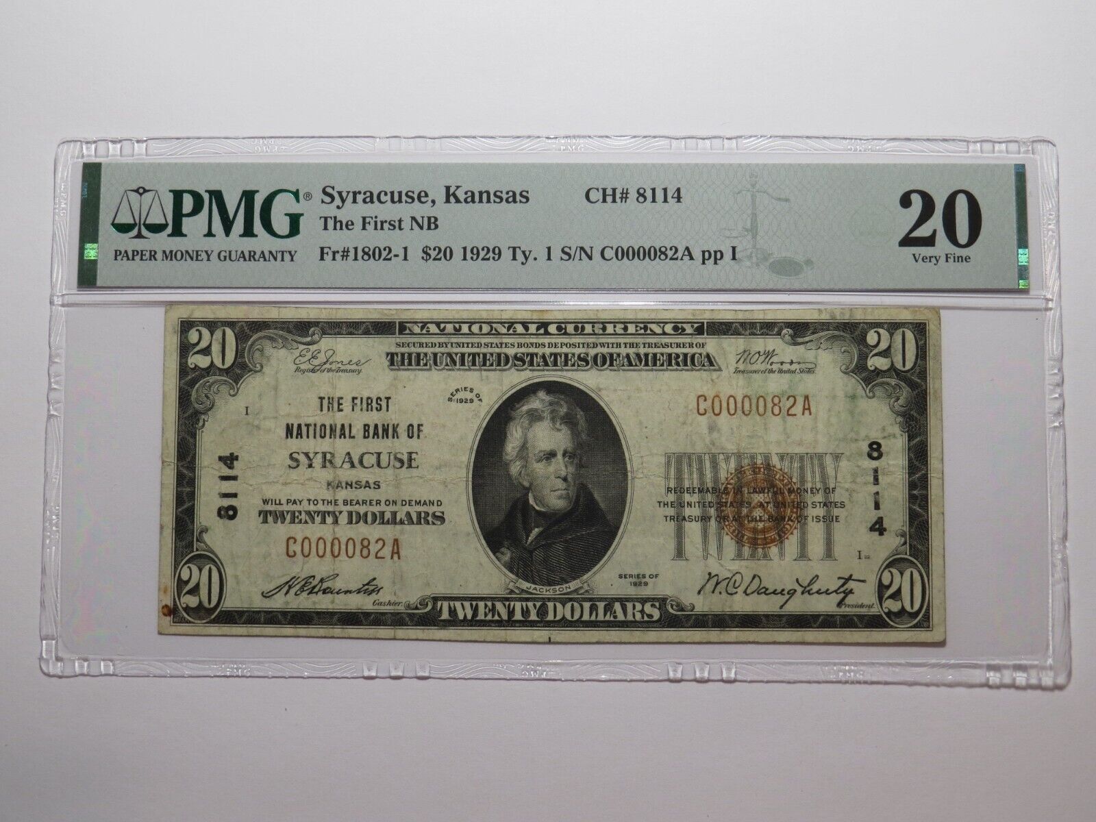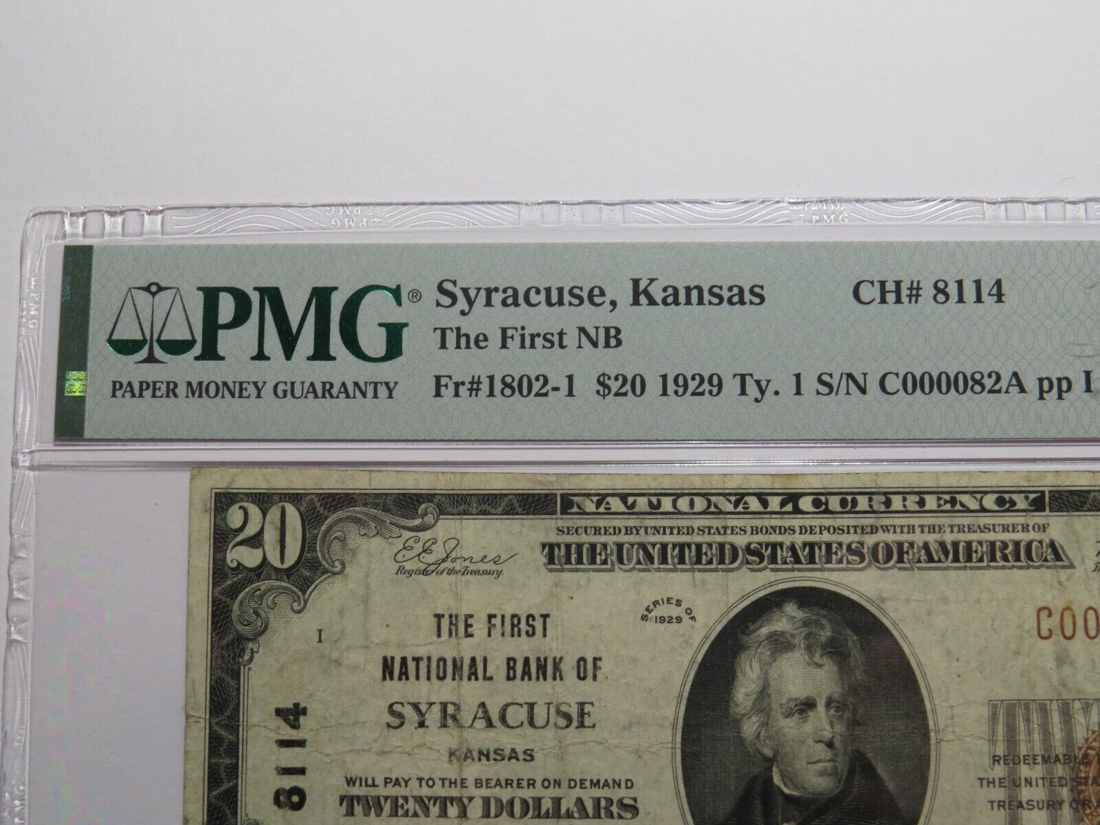 $20 1929 Syracuse Kansas KS National Currency Bank Note Bill Ch #8114 VF20 PMG