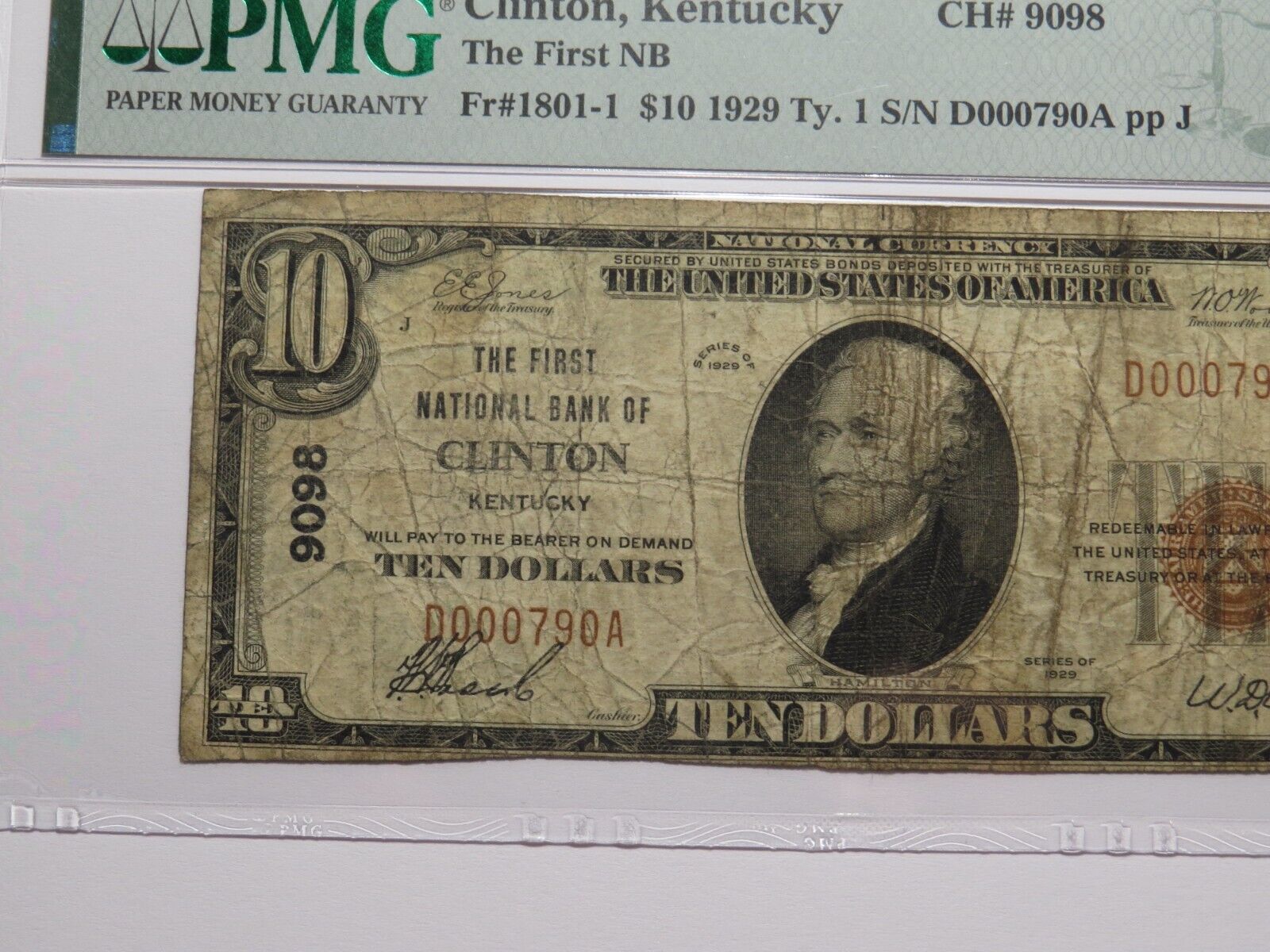 $10 1929 Clinton Kentucky KY National Currency Bank Note Bill Ch. #9098 PMG F12