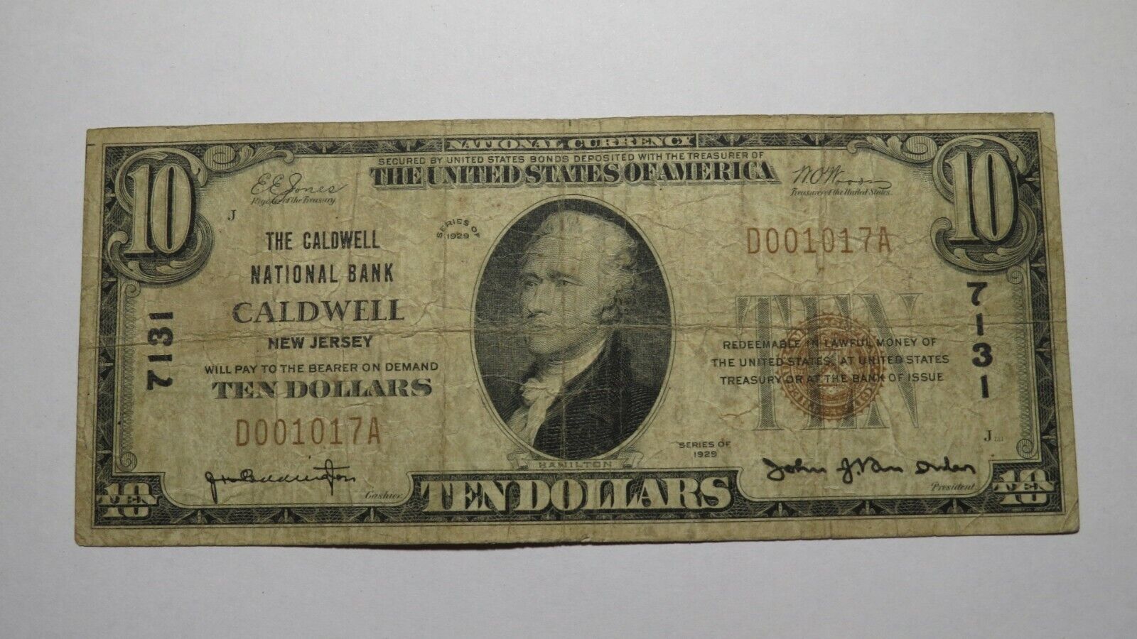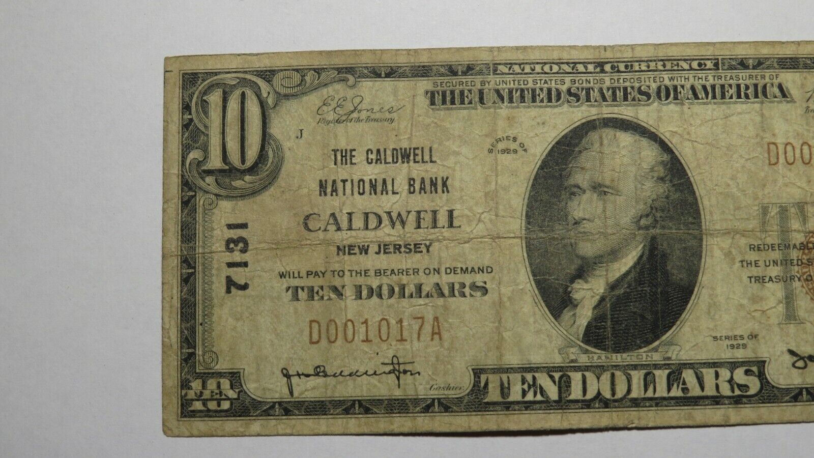 $10 1929 Caldwell New Jersey NJ National Currency Bank Note Bill Ch. #7131 FINE