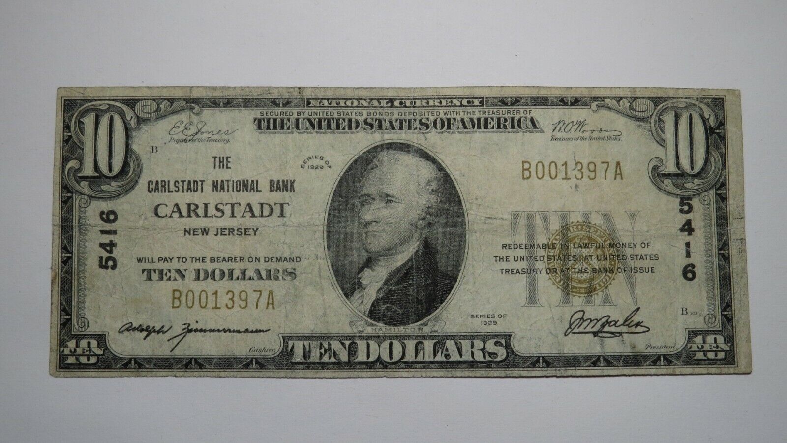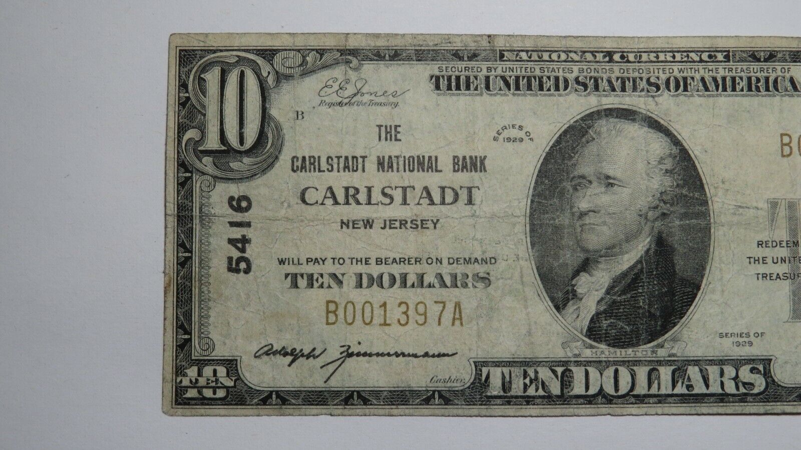 $10 1929 Carlstadt New Jersey NJ National Currency Bank Note Bill Charter #5416