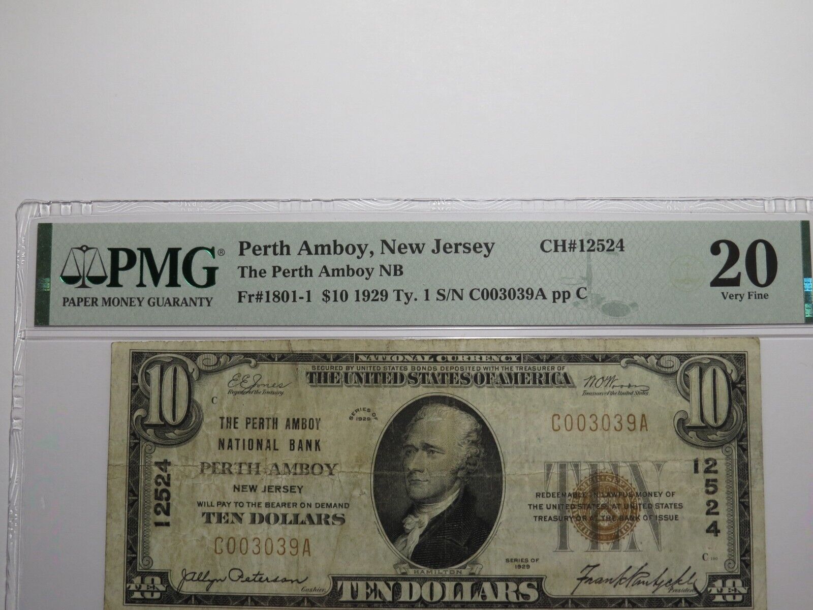 $10 1929 Perth Amboy New Jersey NJ National Currency Bank Note Bill #12524 VF20