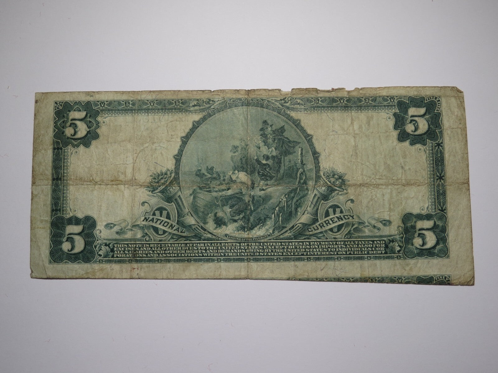 Up for auction is a $5 1902 Linden New Jersey Plain Back National Currency Note. This note was issued by The Linden National Bank. It is Charter #11545. Linden is a tough to find NJ town! This note still has some good crisp left to it and is in good shape with no major issues. This note has a great miscut error with a portion of the note below still attached to this note. This bill is a must have for any collector of National Currency!